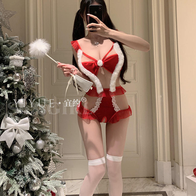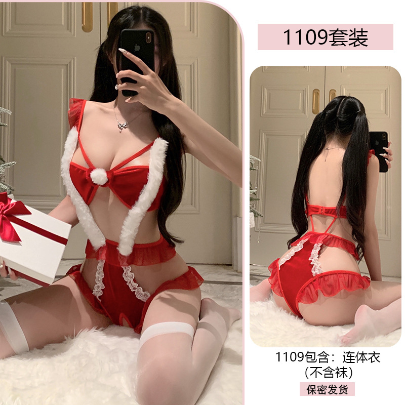 圣诞装性感连体衣开裆制服情趣内衣免脱睡衣战袍