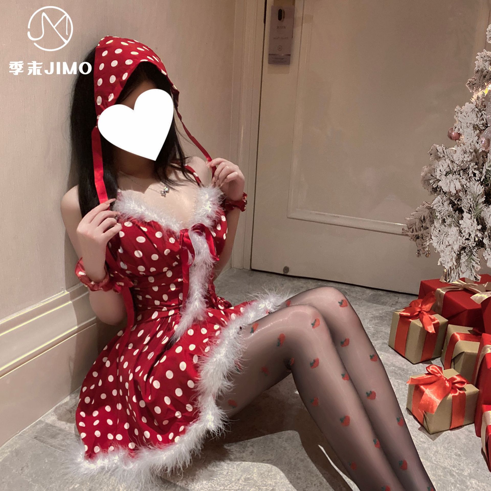 波点圣诞裙+同款丝袜