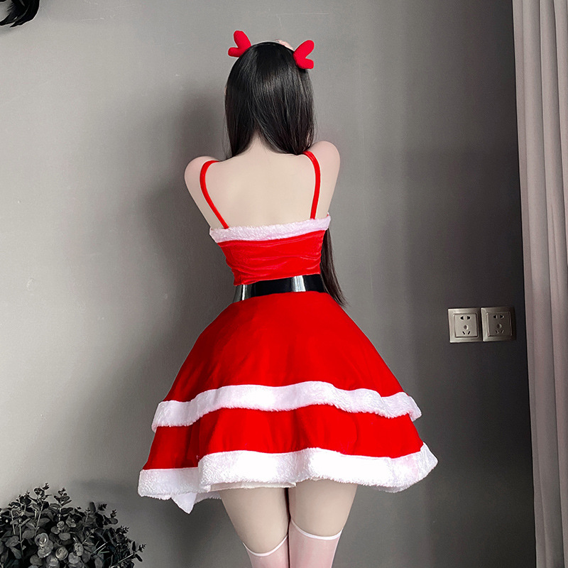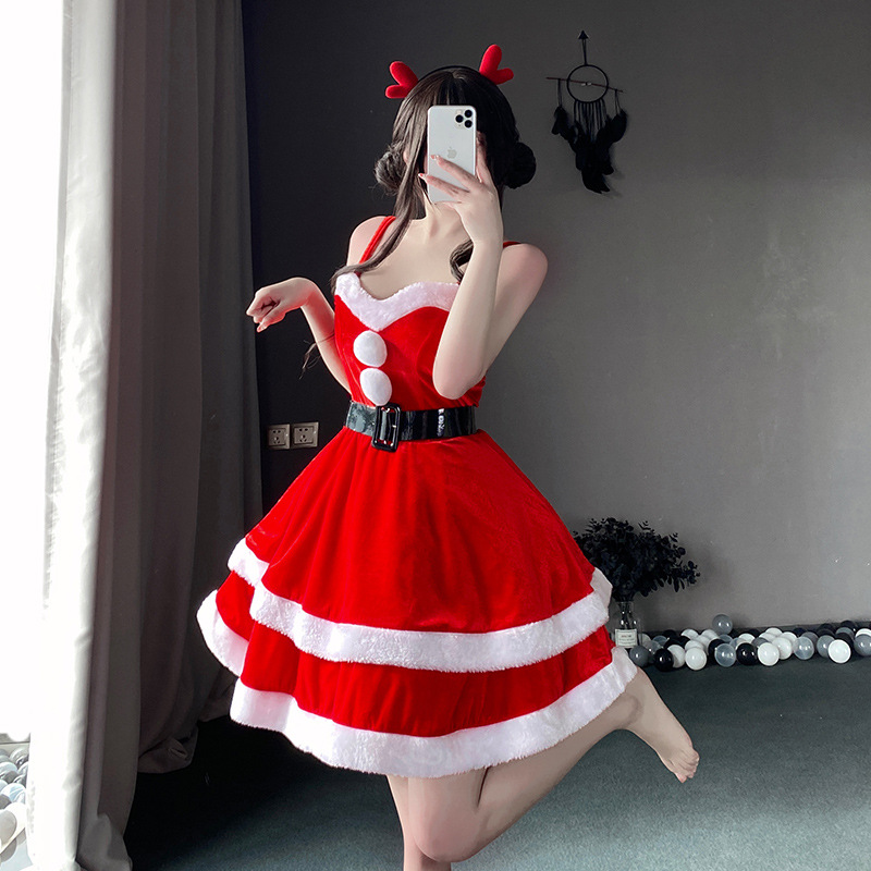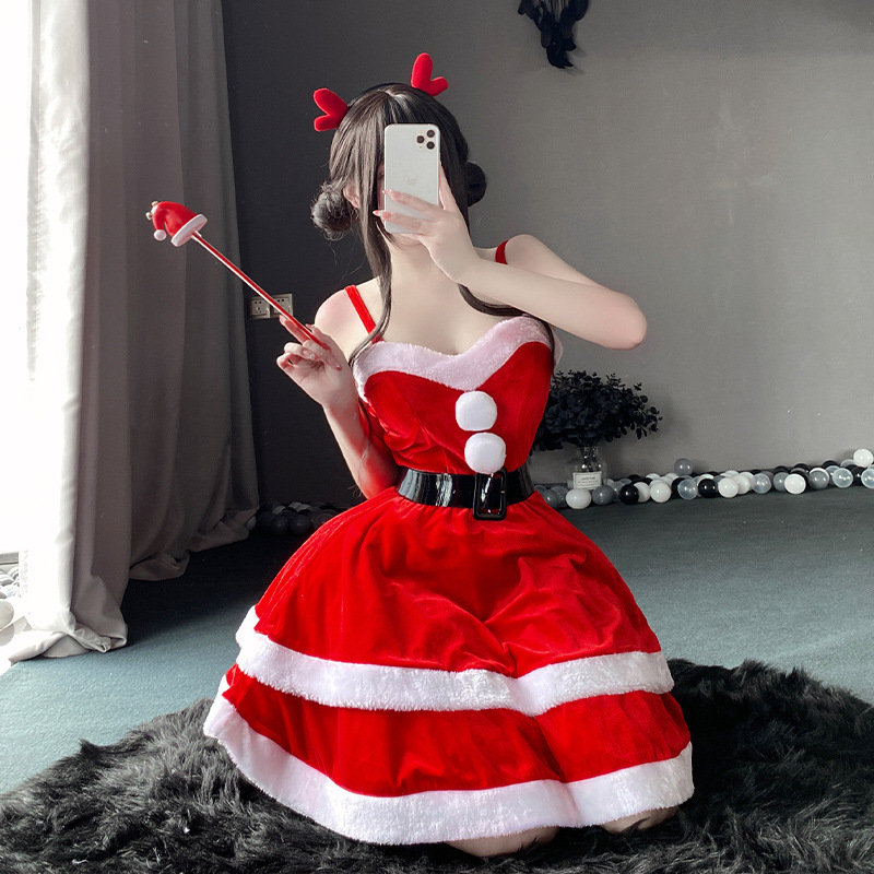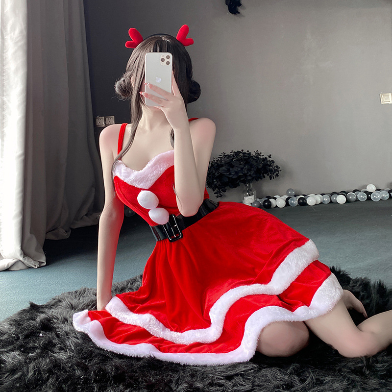 圣诞小猫咪性感可外穿纯欲睡裙小胸显大睡衣女秋冬新款圣诞战袍