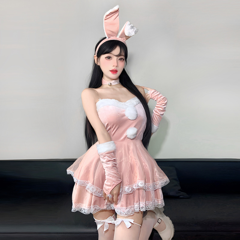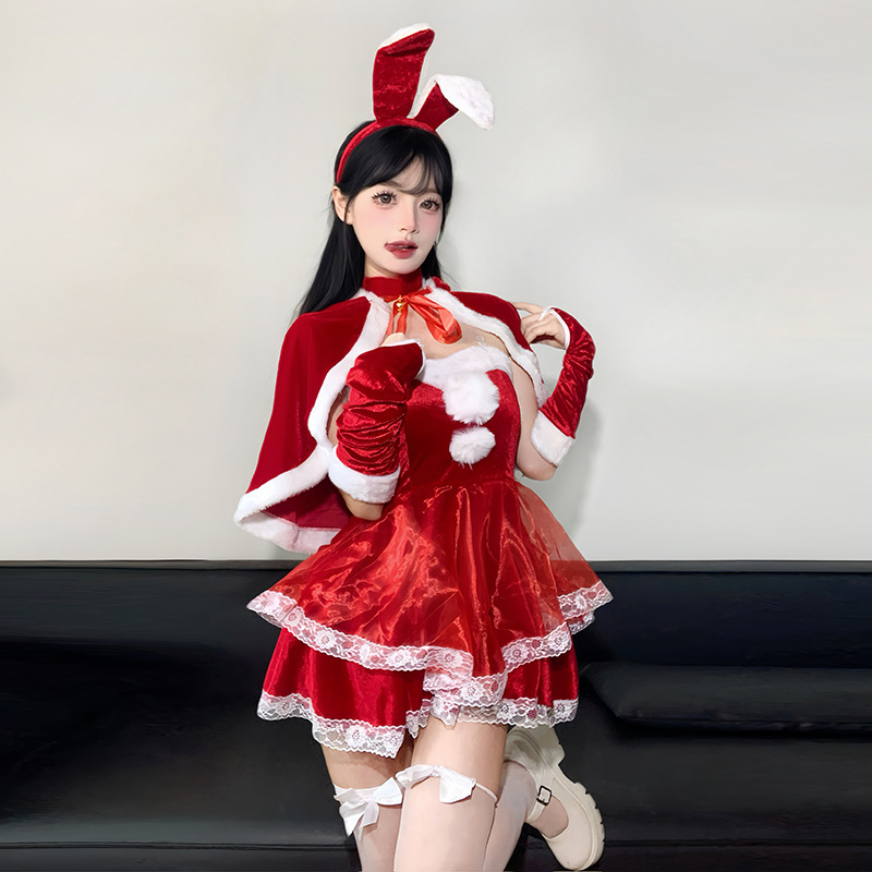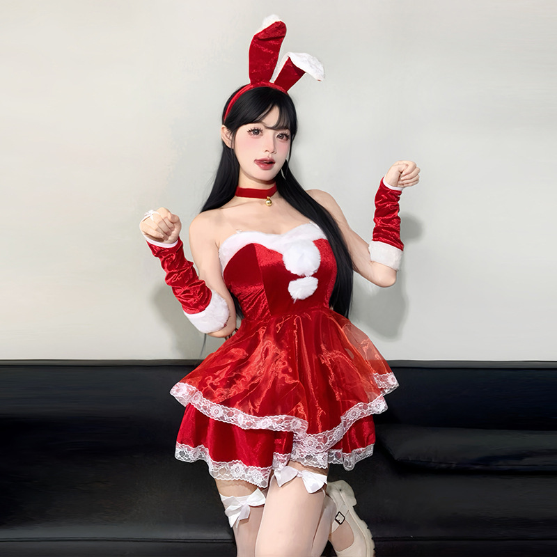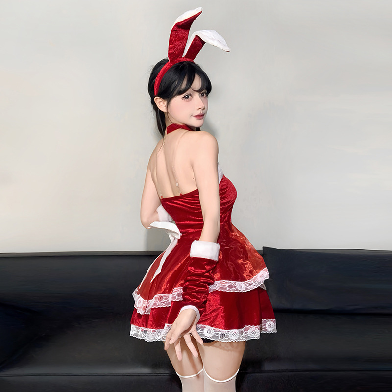 性感圣诞装女纯欲蕾丝连衣裙套装兔女郎角色扮演网红新年战袍