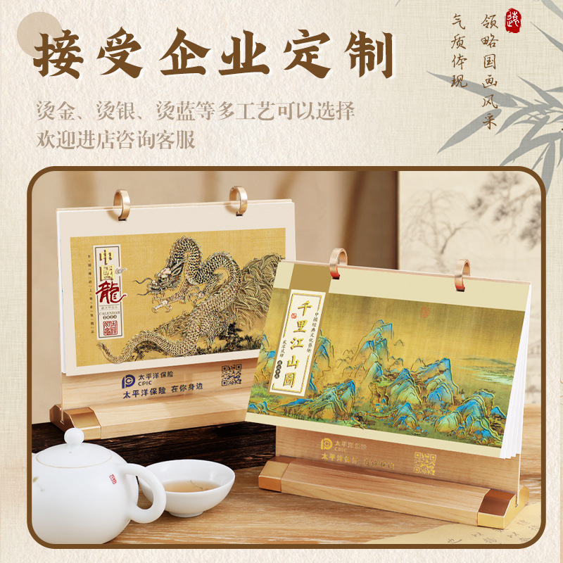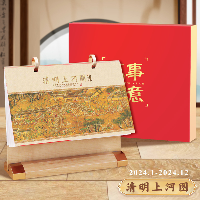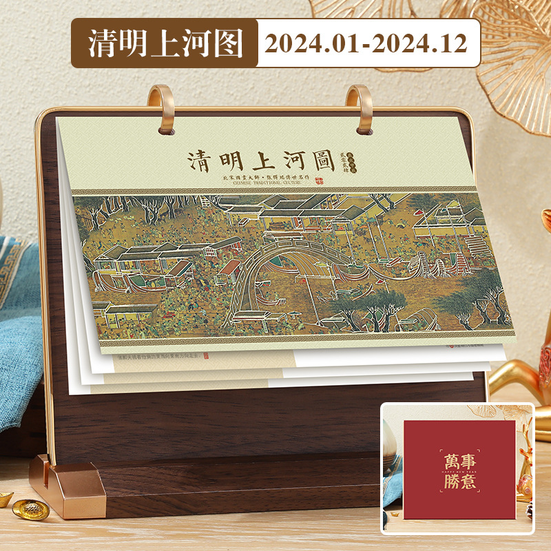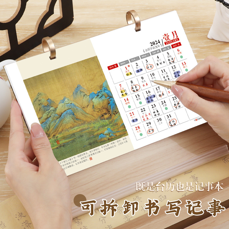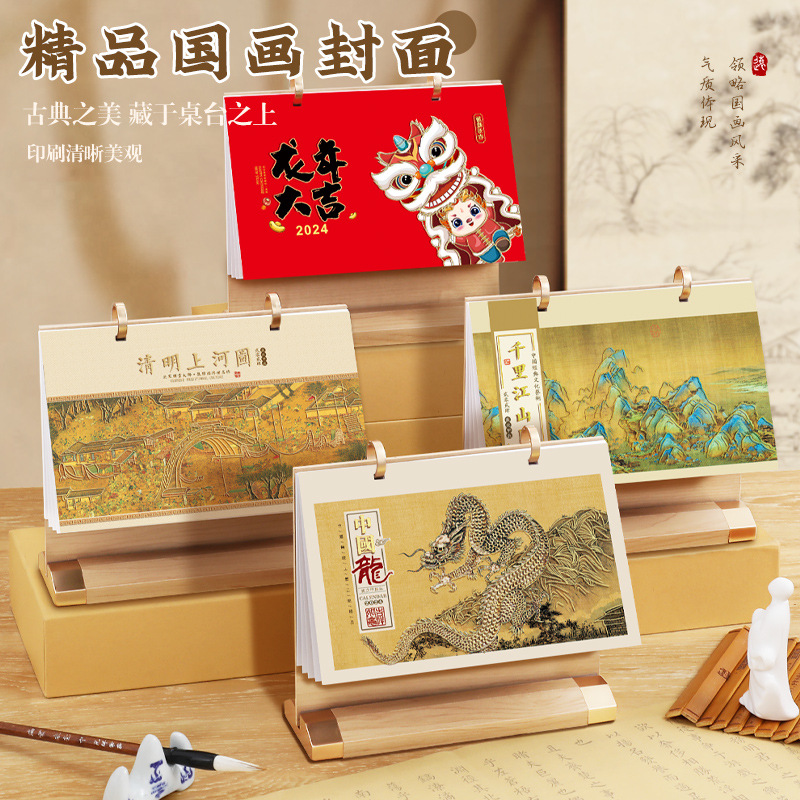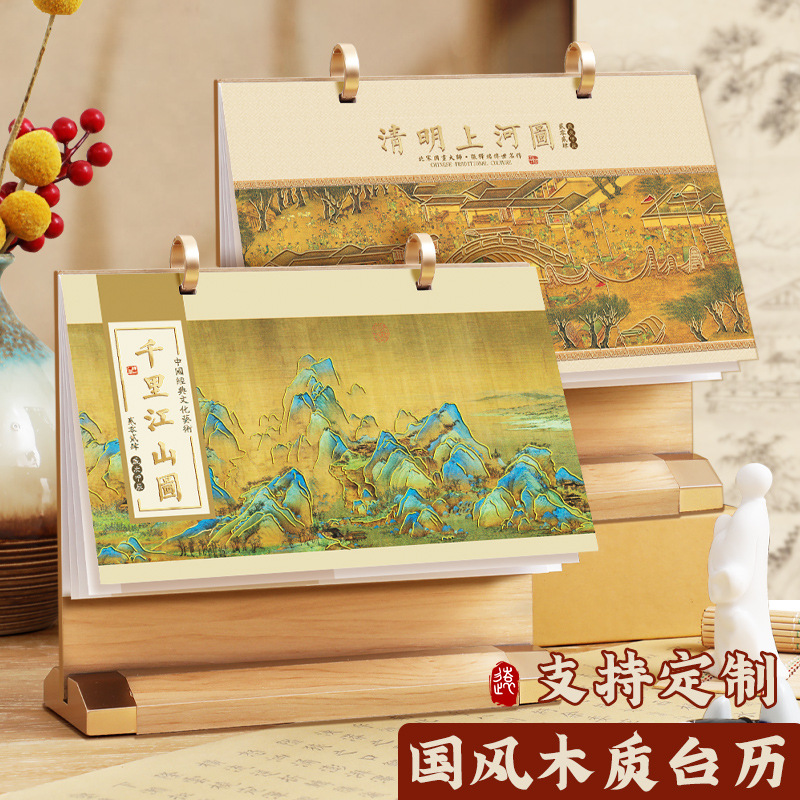 中国风台历年新款桌面工作日历木质国潮记事计划本礼盒清明上