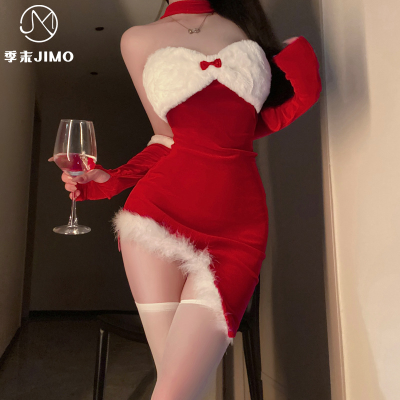 新款圣诞装兔女郎制服情趣内衣抹胸不规则红色新年战袍女