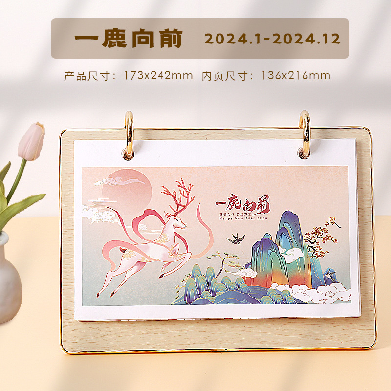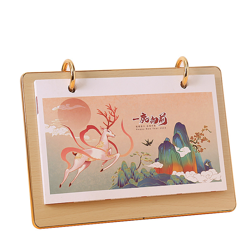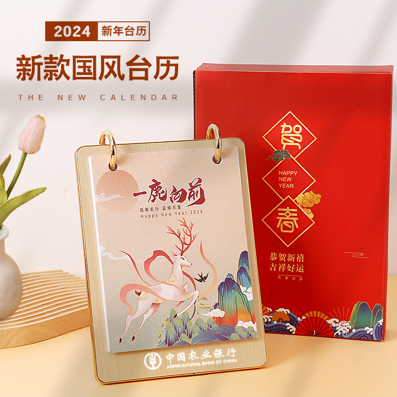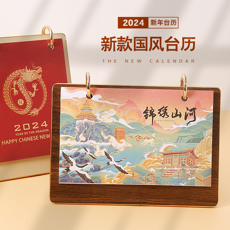 新款国风锦绣山河台历定 制办公广告宣传日历摆件