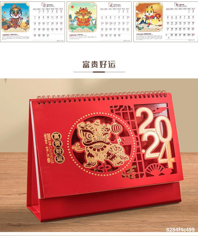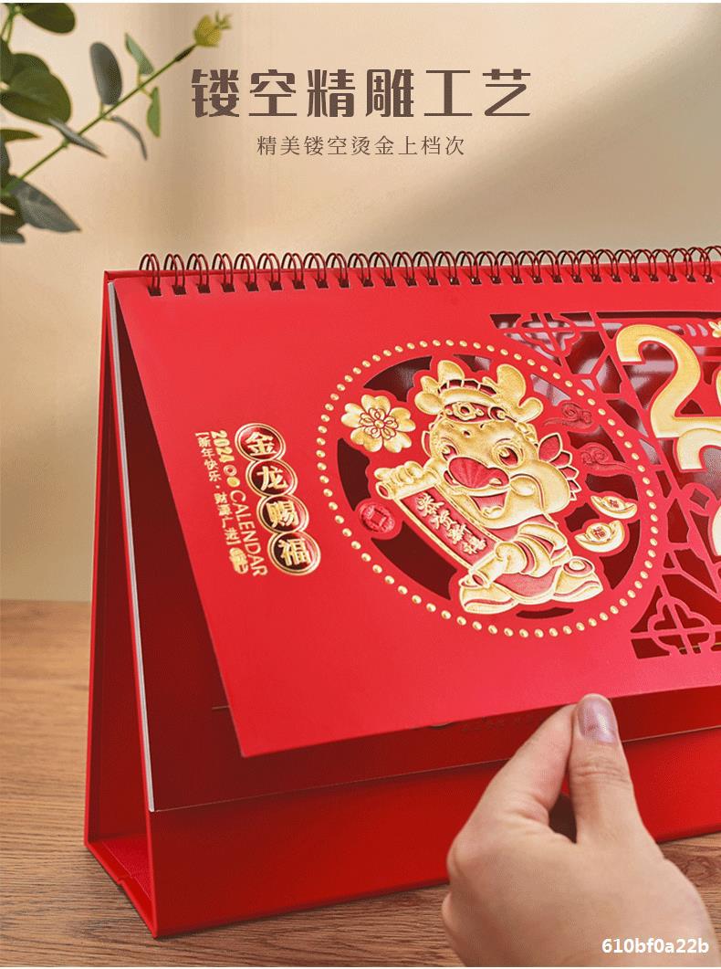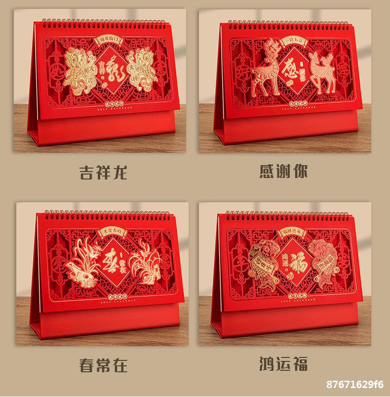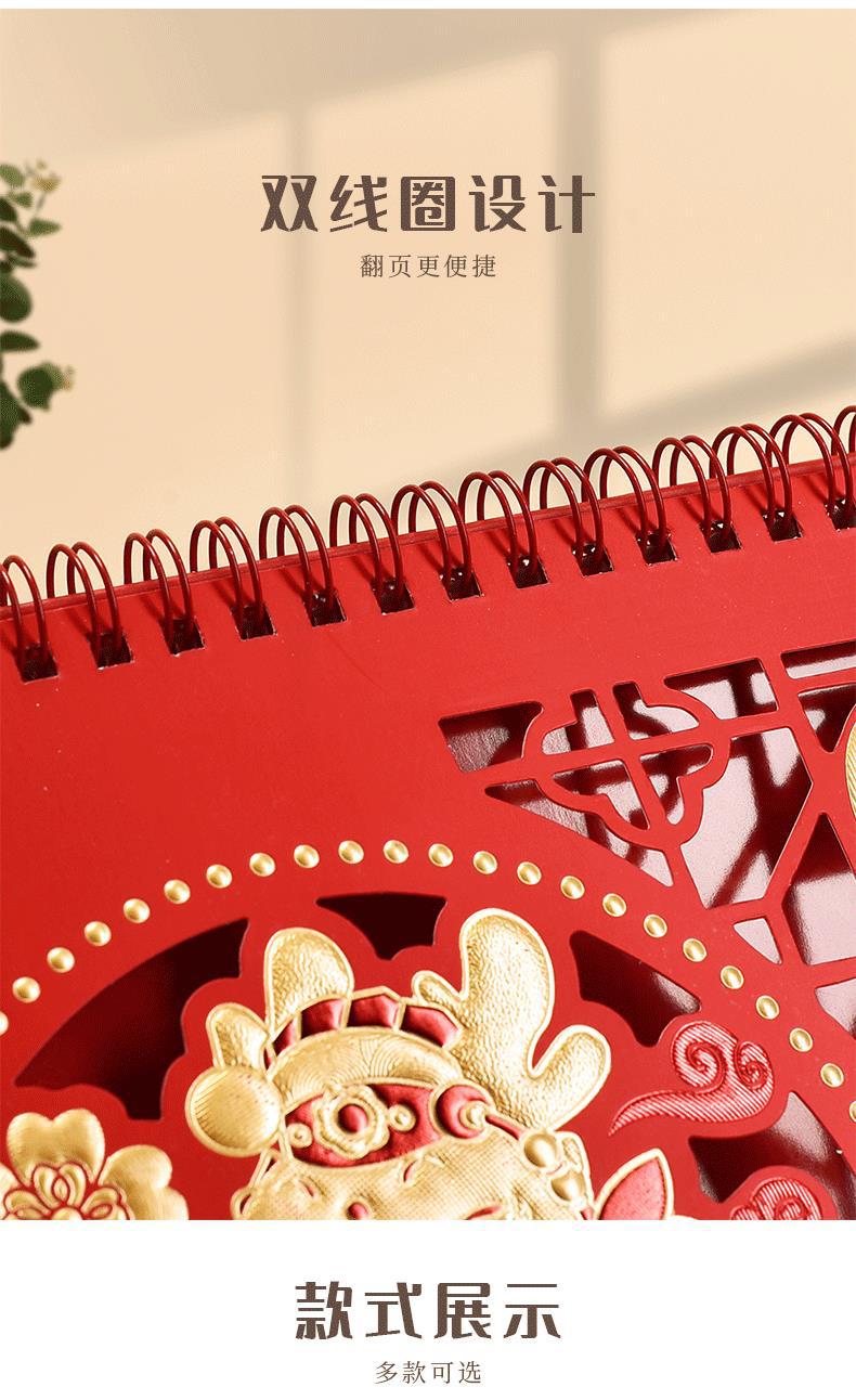 桌历年新款日历中国风新年喜庆镂空烫金商务办公记事本桌面小