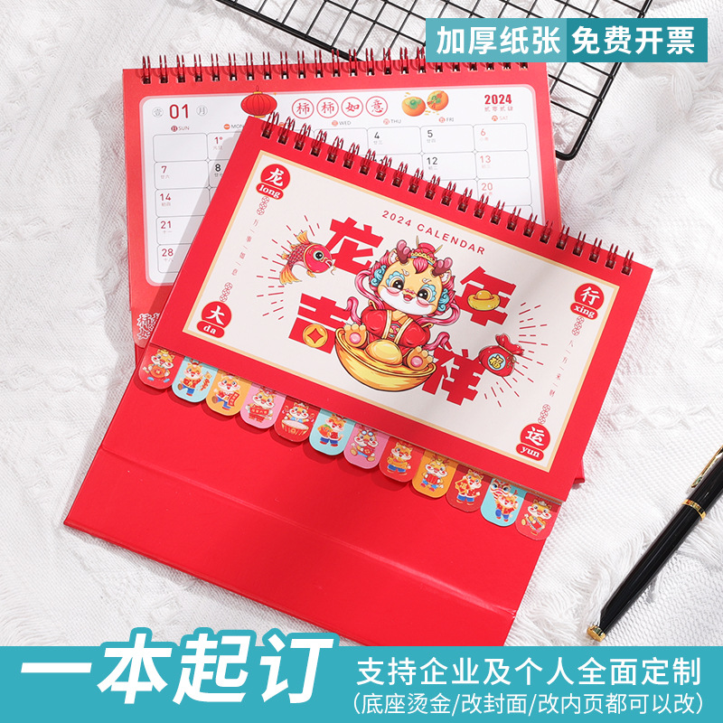 现货龙年卡通台历创意企业广告吊牌年历月历台历