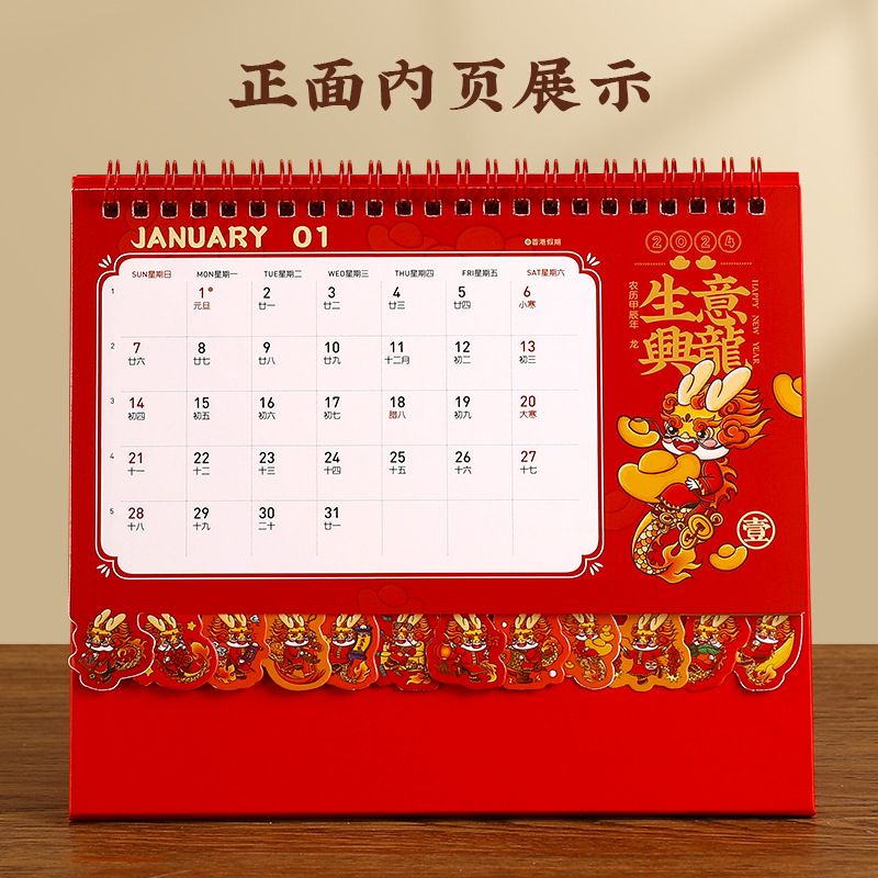 龙年台历创意简约办公桌面摆件日历定制公司广告记事月历