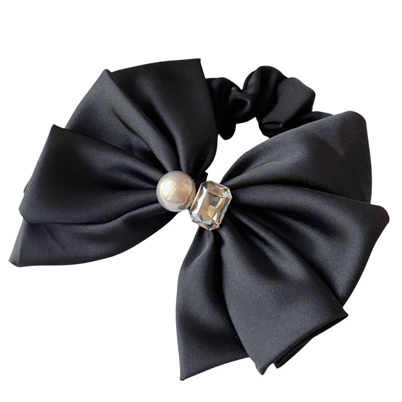 新款高级感缎面蝴蝶结大肠发圈气质珍珠简约扎发高低马尾头绳