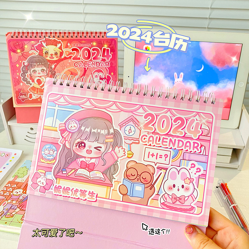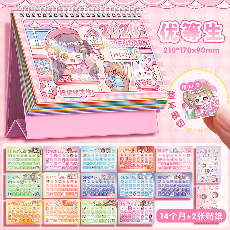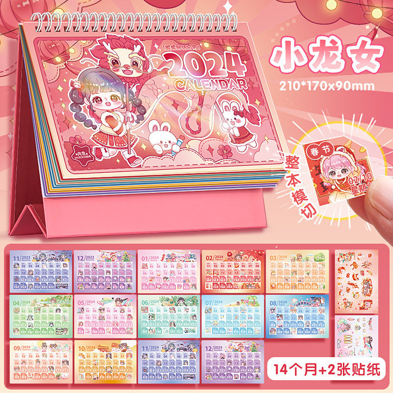 年桌面记事小台历学生自律文具卡通贴纸台历龙年打卡日历