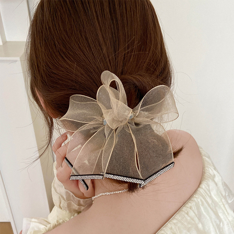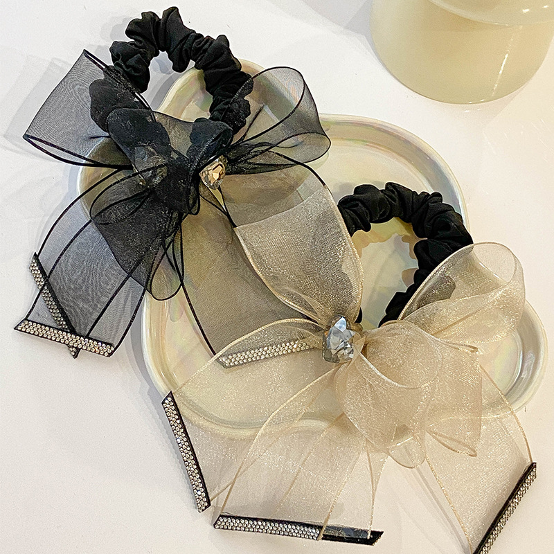 原创高级感欧根纱蝴蝶结K9水晶水钻发圈发绳马尾扎头绳橡皮筋饰品
