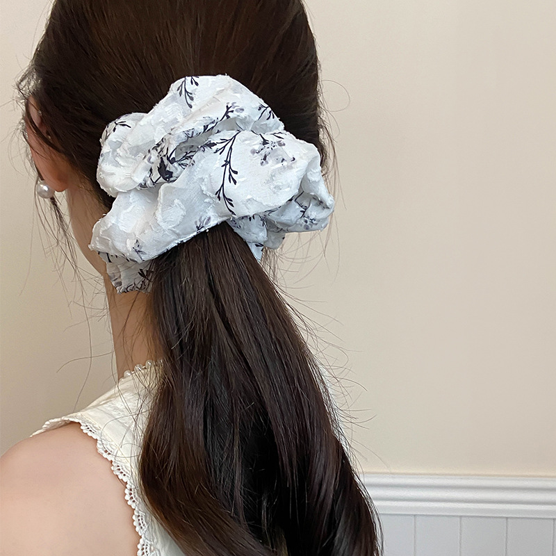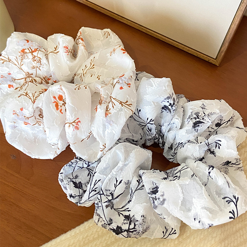 新款刺绣碎花提花大肠发圈干净复古镂空个性原创头绳发饰品女