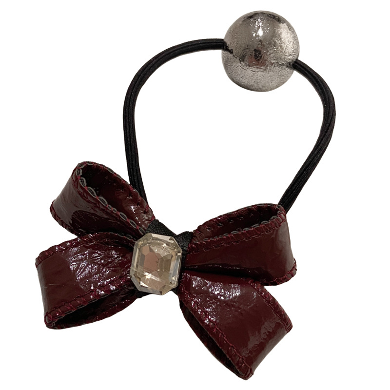 高级感复古皮质蝴蝶结发圈轻奢珍珠高弹力发绳皮套头花头绳发饰品