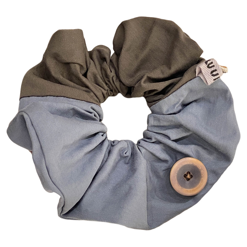 韩国撞色牛仔棉布大肠圈双拼个性发圈纽扣头绳百搭发绳气质发饰品