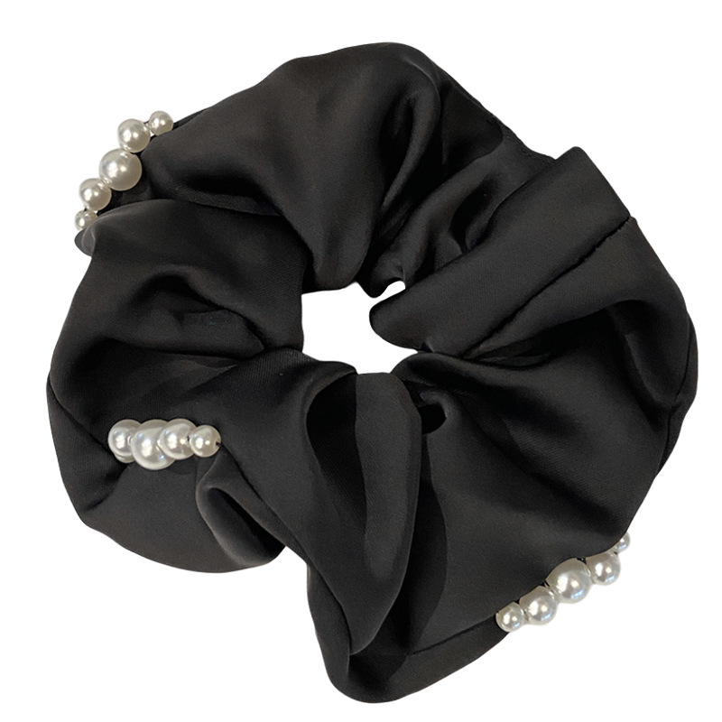 法式新款气质优雅珍珠缎面大肠发圈简约赫本风高级感扎头发绳发饰