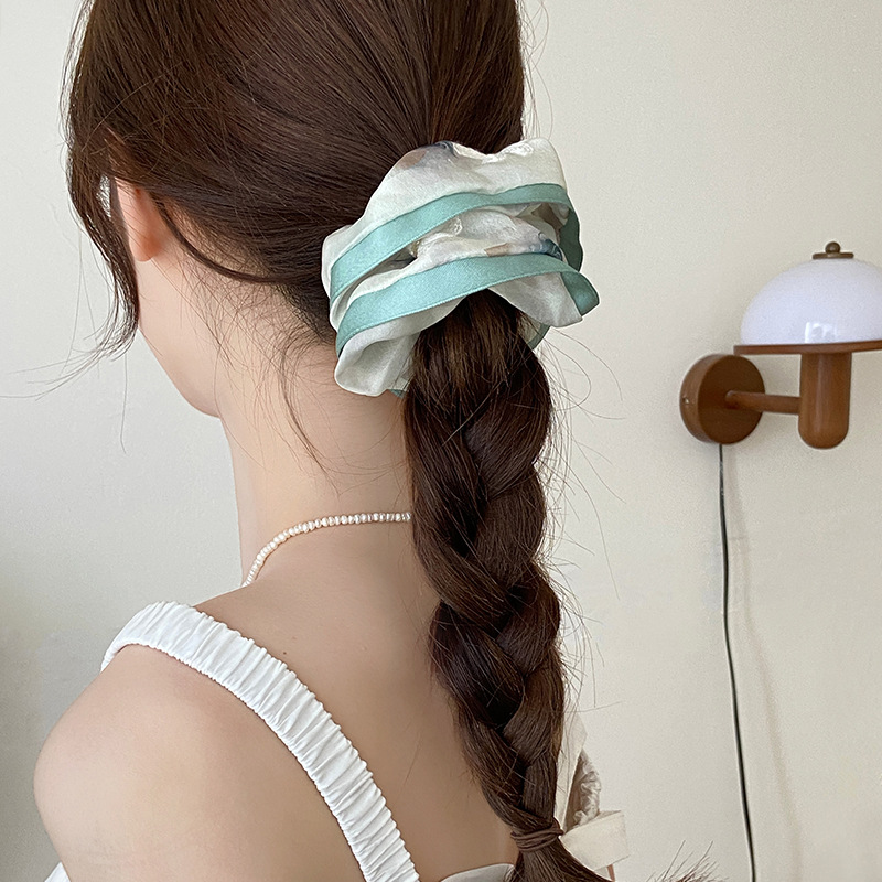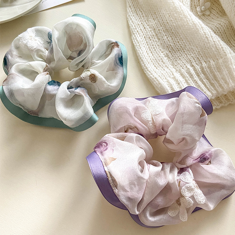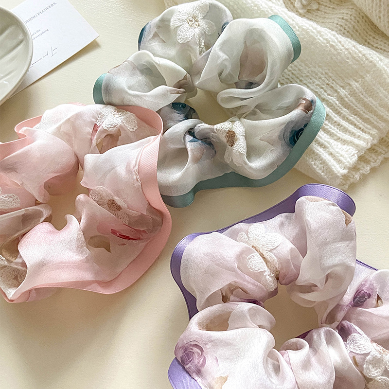 韩版新款高级感刺绣花朵大肠发圈马尾皮筋发绳丸子头盘发发饰