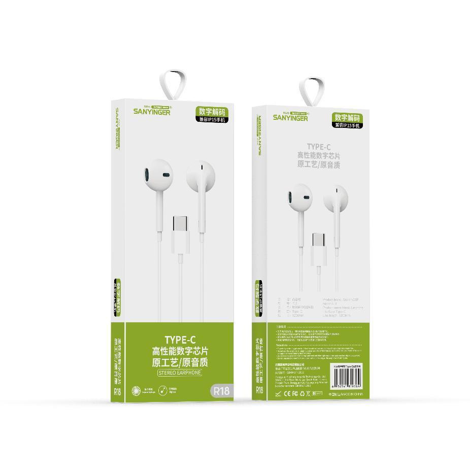 【R18】平耳耳机有线typec音乐耳机一键接听 数字解码有线耳机