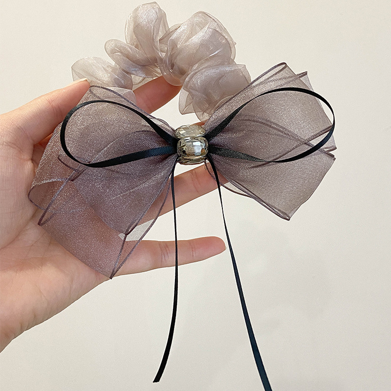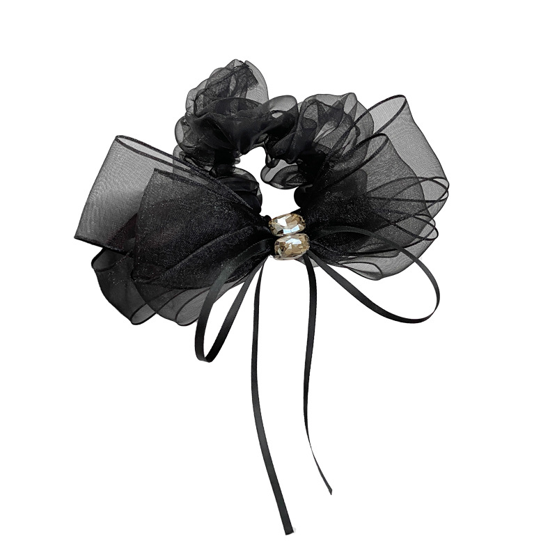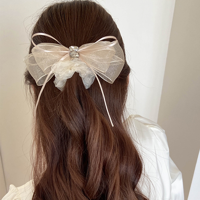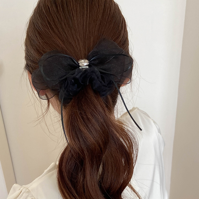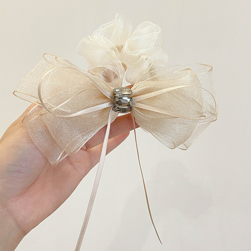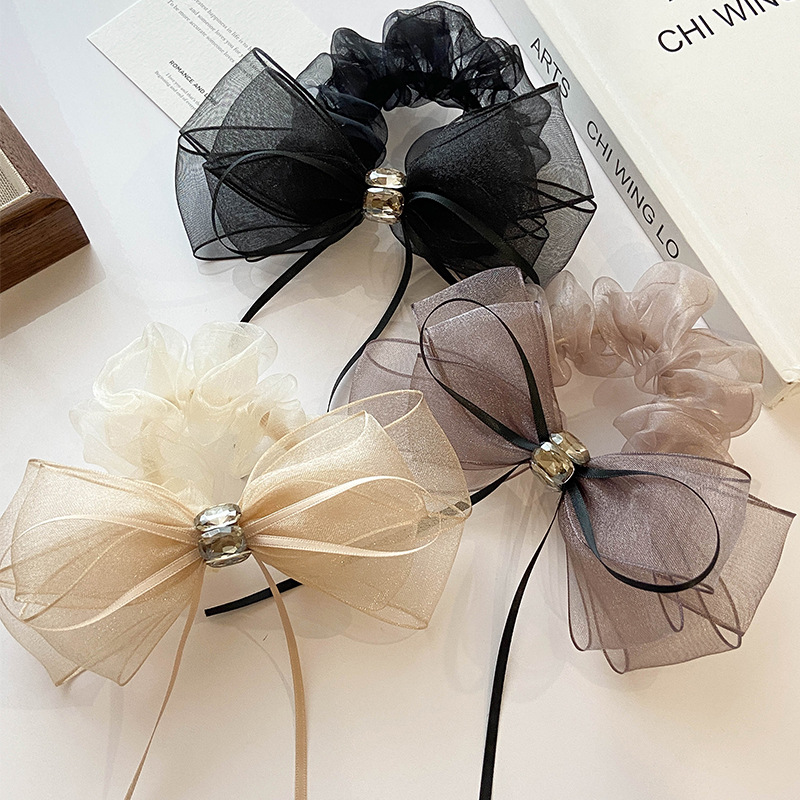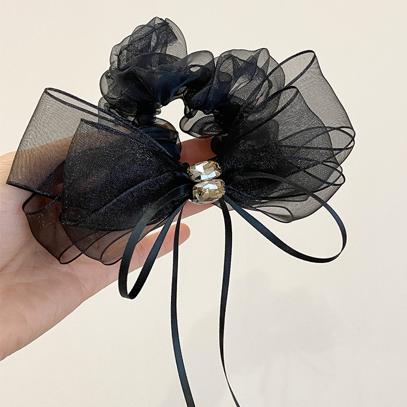 年新款原创韩版网纱水钻丝带蝴蝶结大肠发圈马尾发绳头饰品