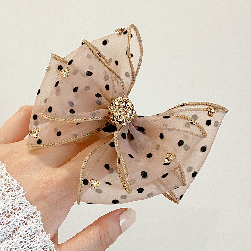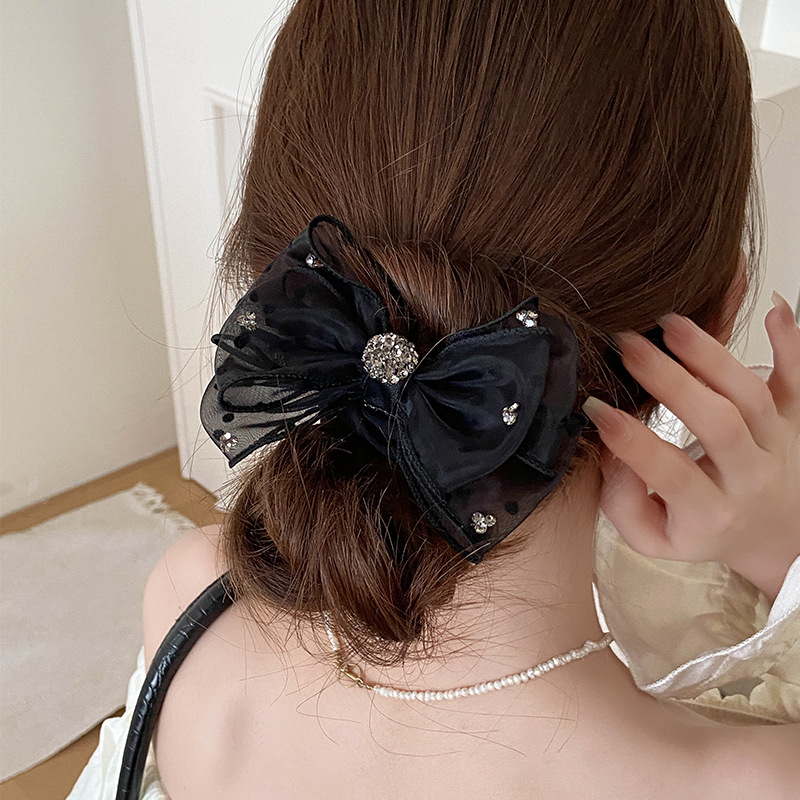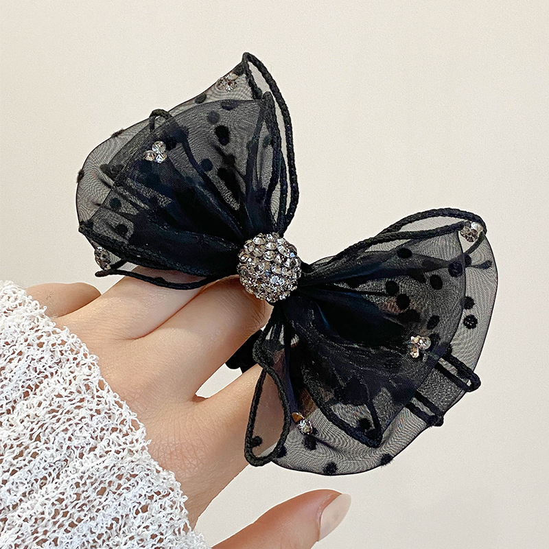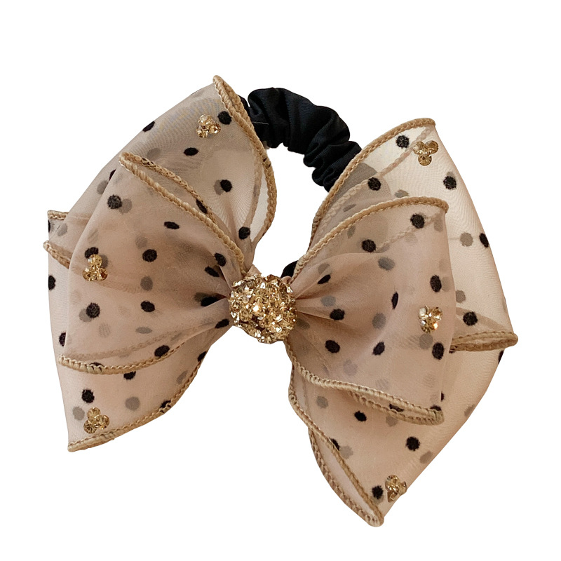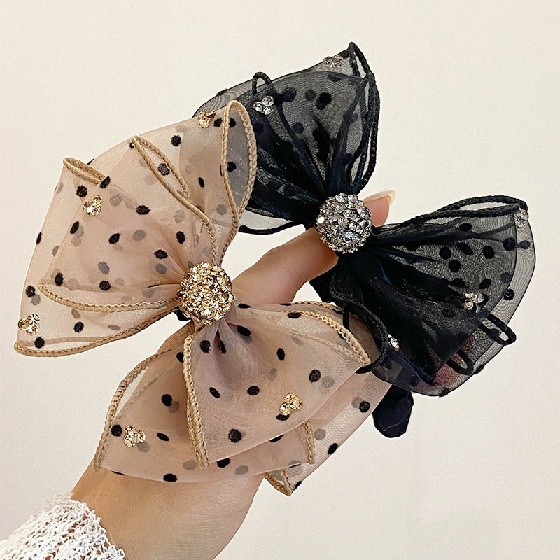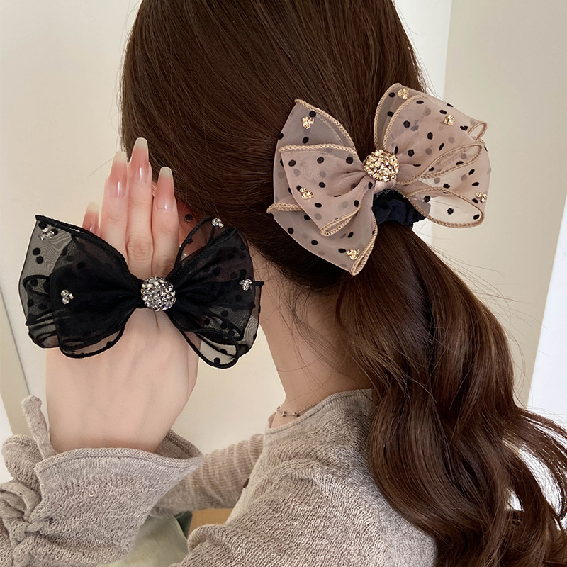 韩国雪纱波点蝴蝶结水钻大肠马尾发圈高级感网红头花发绳头饰品
