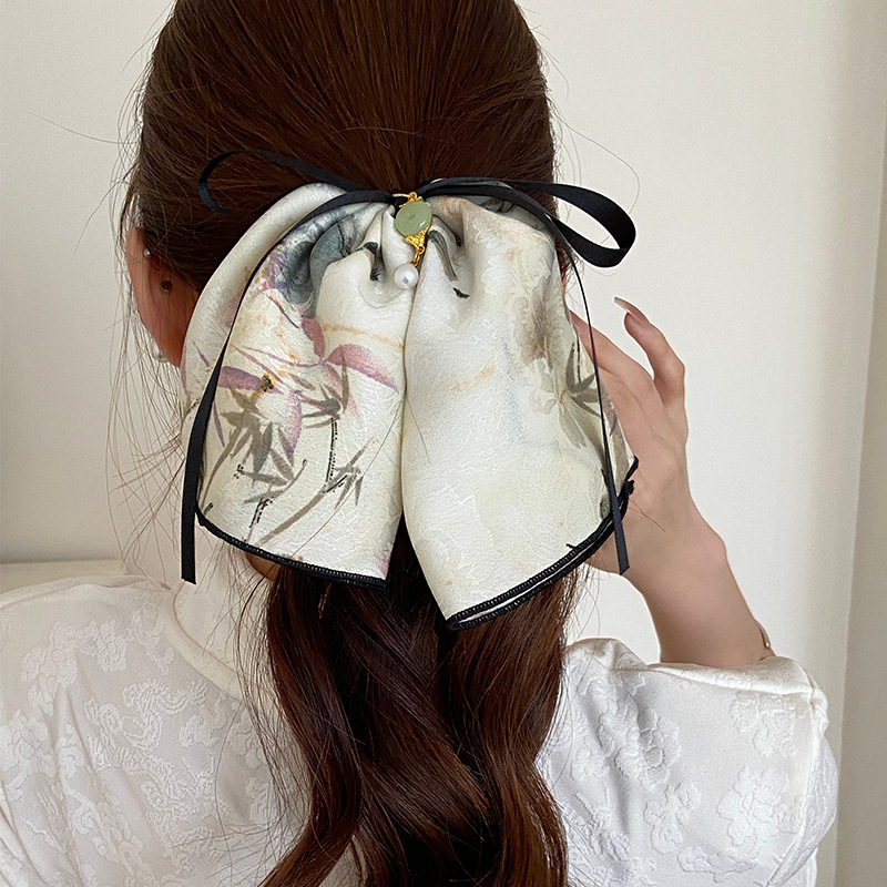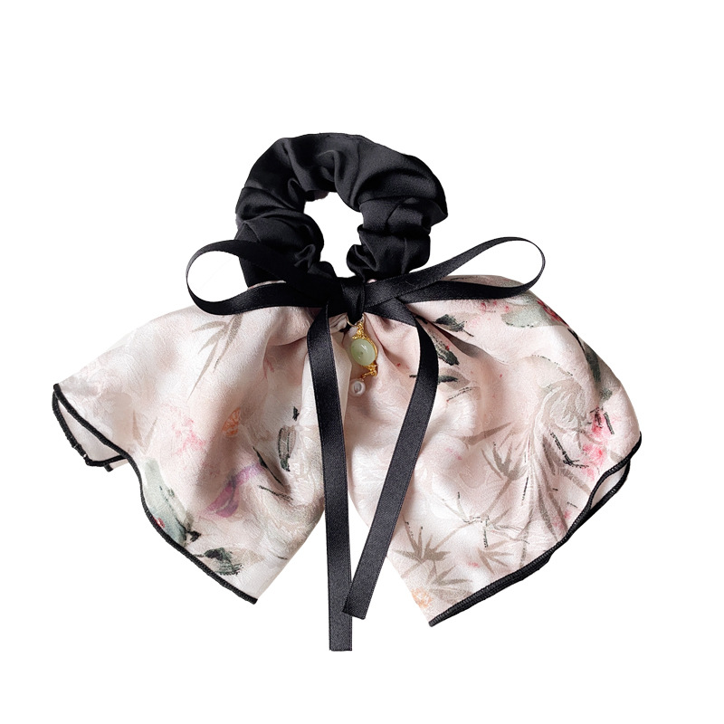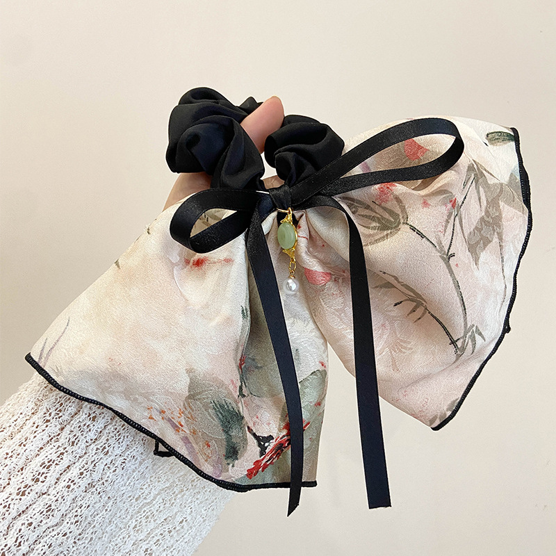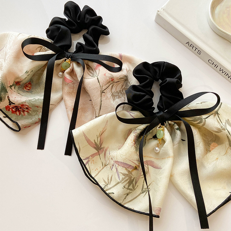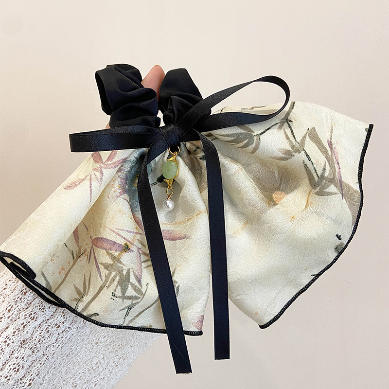 高级感古风马尾大肠发圈花朵竹子蝴蝶结飘带头绳头花后脑勺头饰品