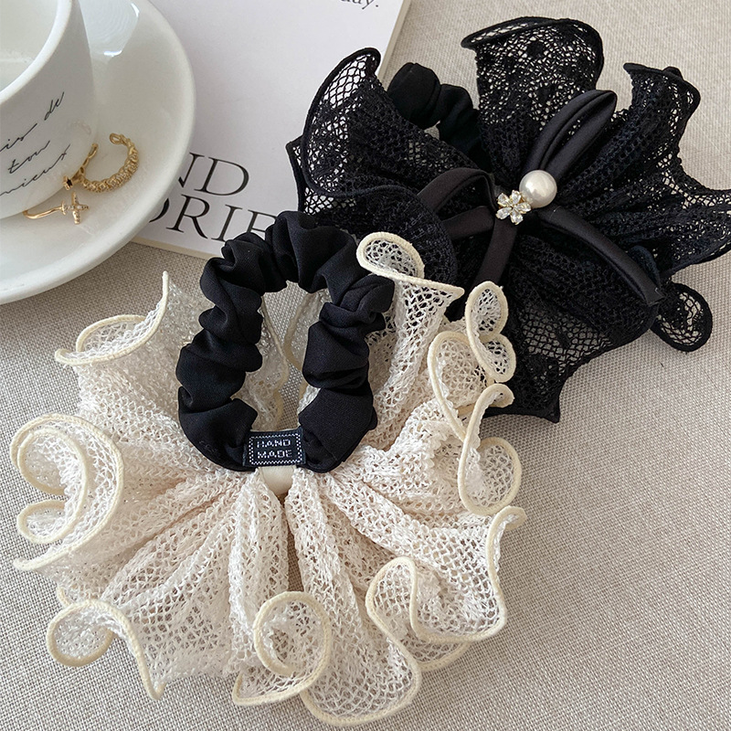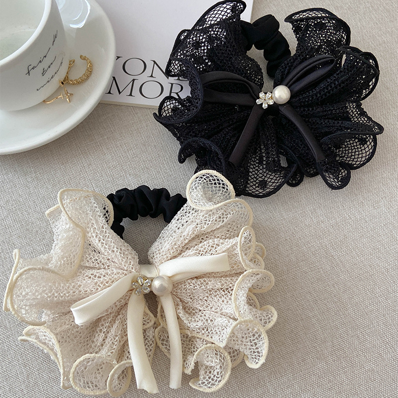 法式复古温柔蕾丝蝴蝶结大肠发圈高级感清新发绳新款头饰发饰头花