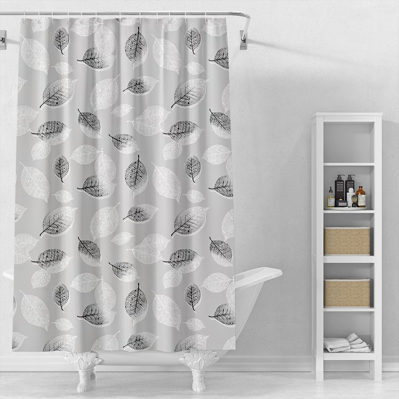 黑白树叶浴帘防水防霉浴室窗帘防水布洗澡隔断浴帘