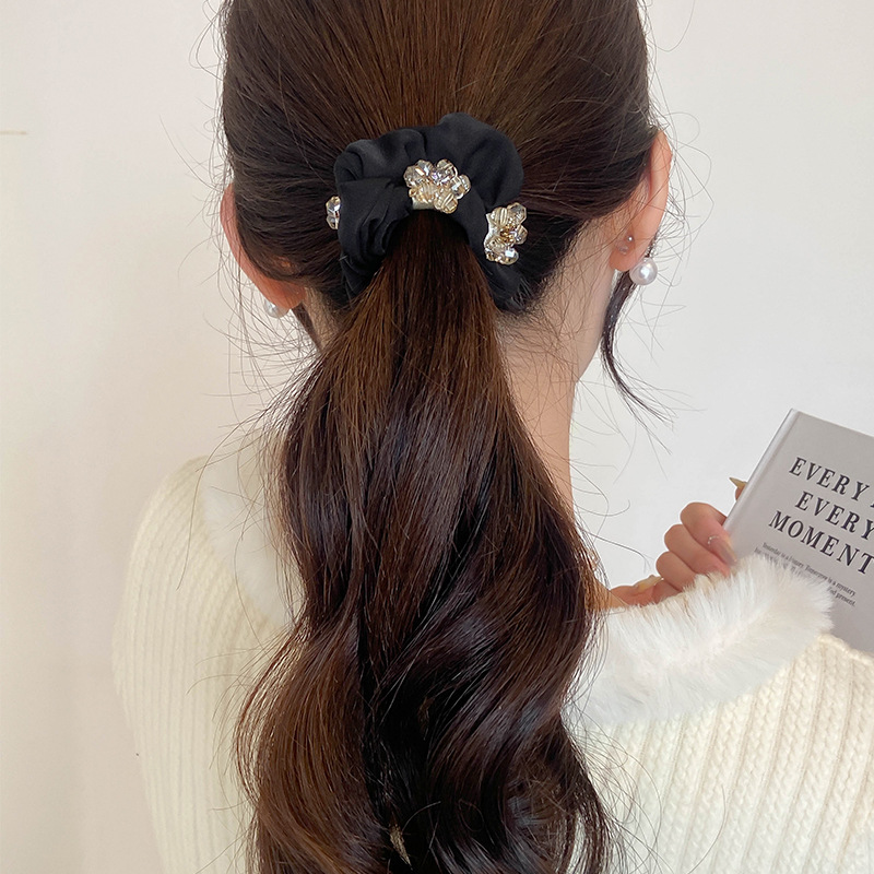 高级感K9水晶大肠发圈气质复古黑色发绳新款高弹力扎头发皮筋
