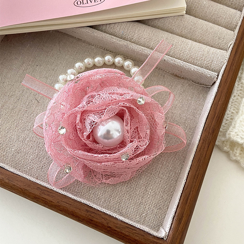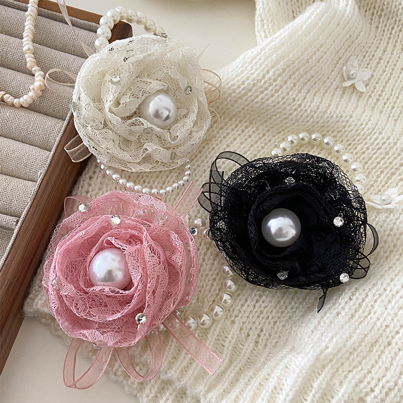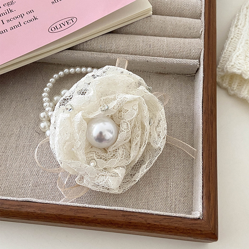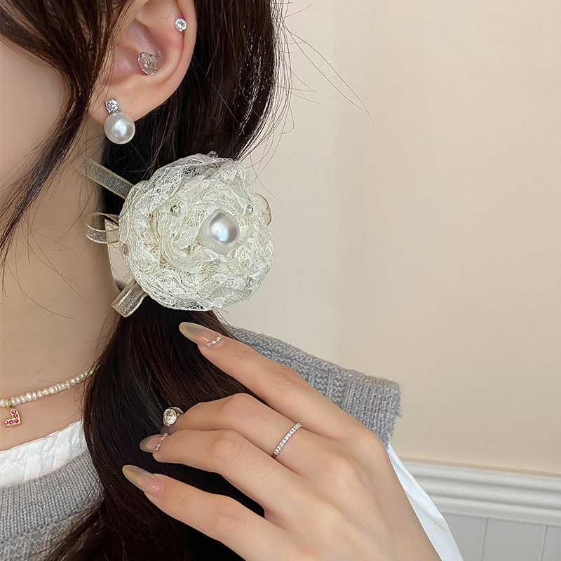 温柔气质千金款蕾丝蝴蝶结发圈发绳韩版时尚白色布艺肠圈弹力皮筋