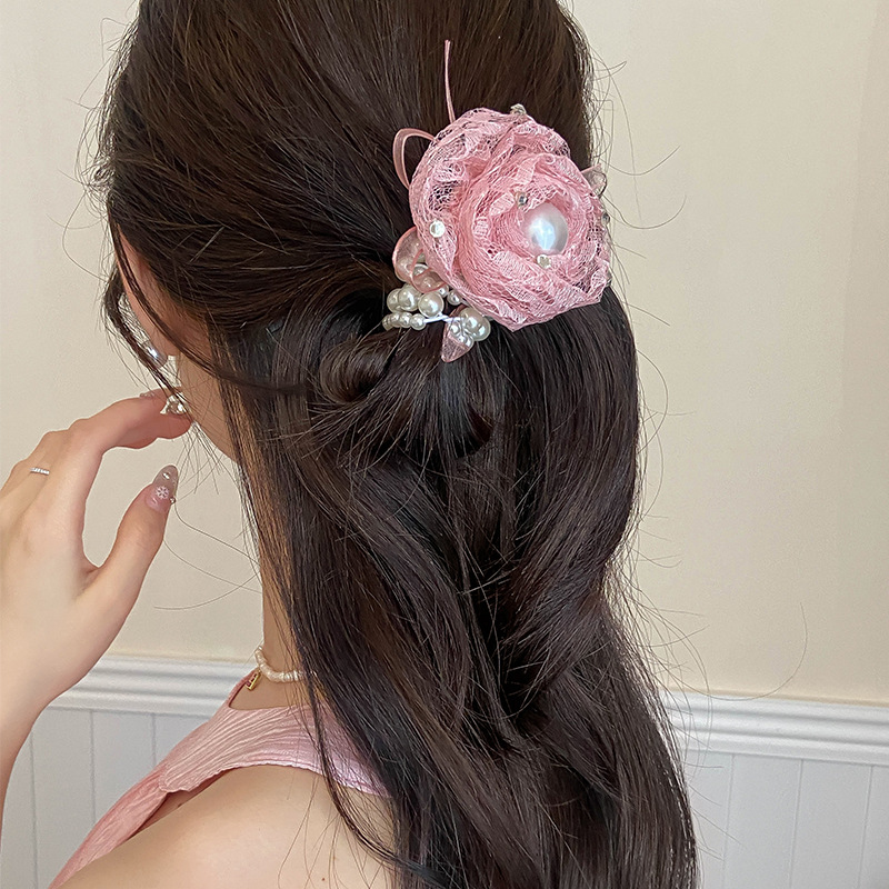 法式新款简约气质缎面蝴蝶结飘带发夹可爱少女感后脑勺弹簧夹发饰