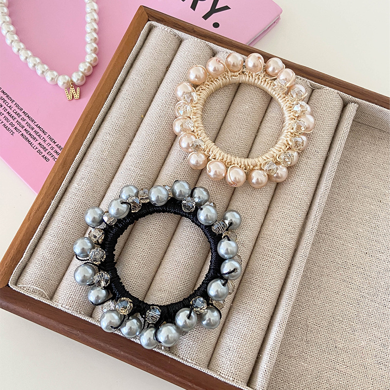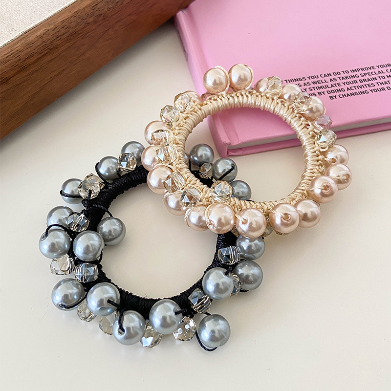 新款高档K9水晶超闪气质珍珠头绳女韩国绑头发丸子头马尾发圈