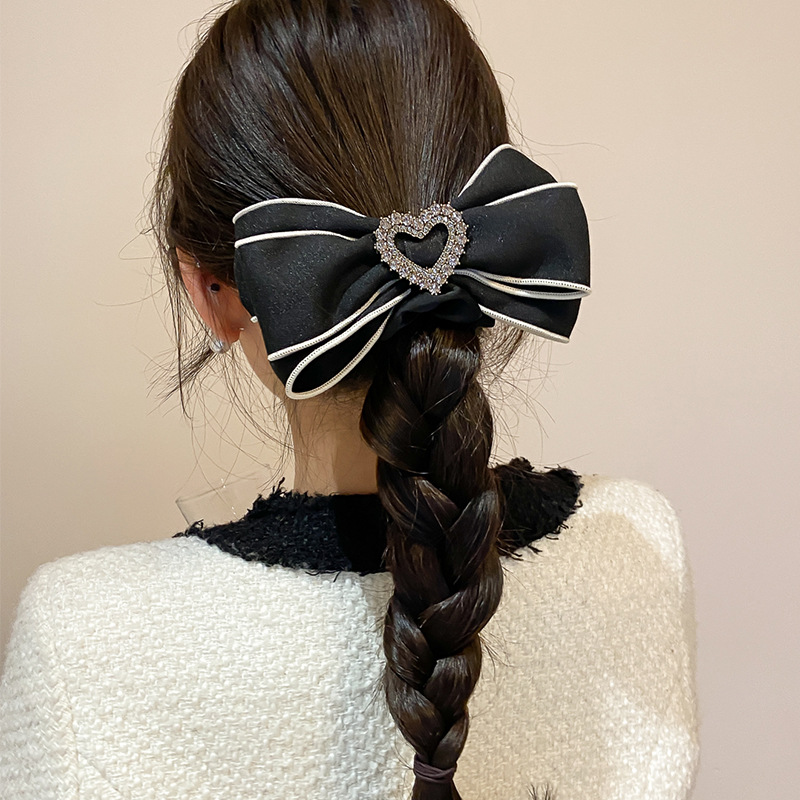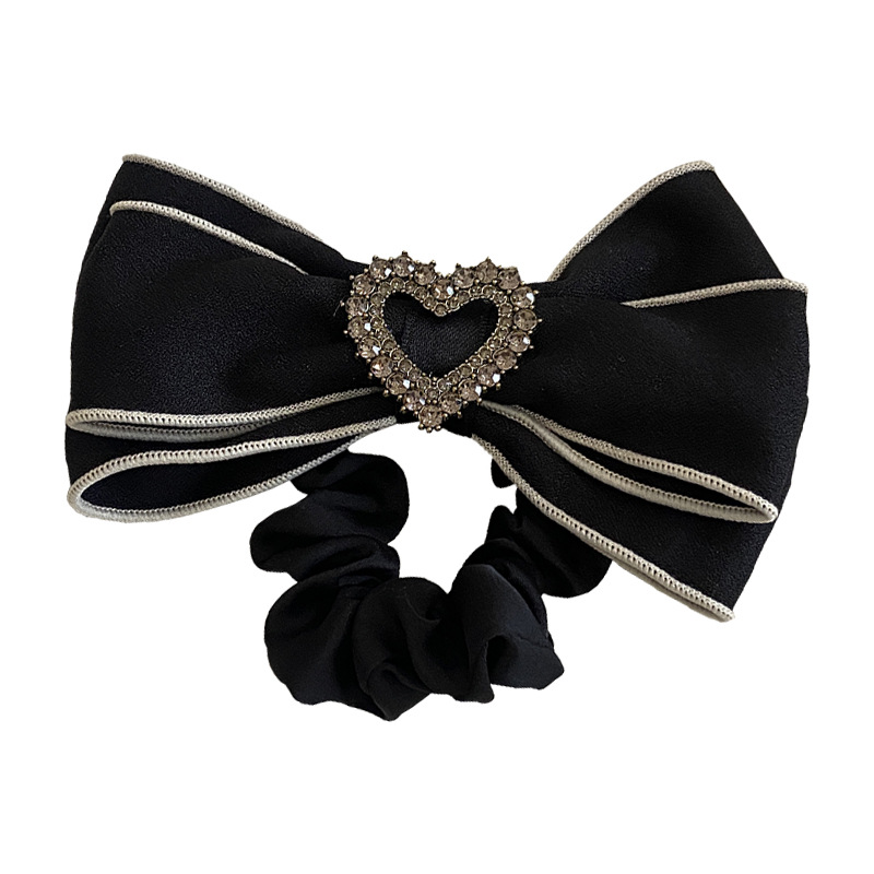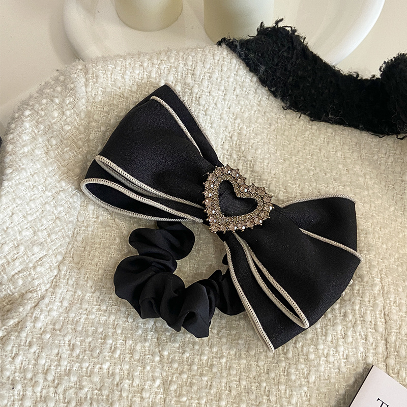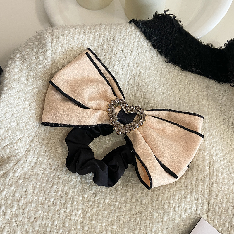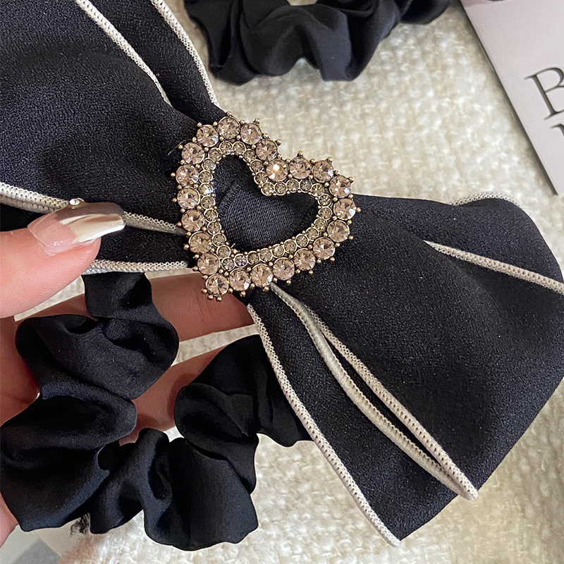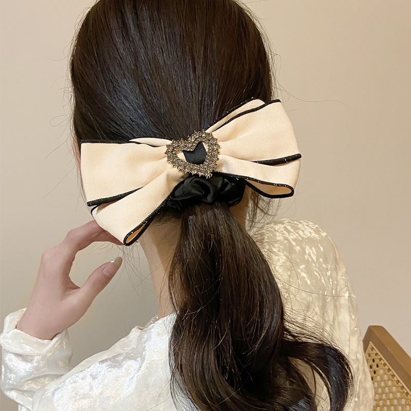 法式条纹水钻爱心蝴蝶结大肠发圈女高级感奶白色发绳头绳大号发饰