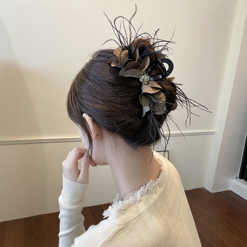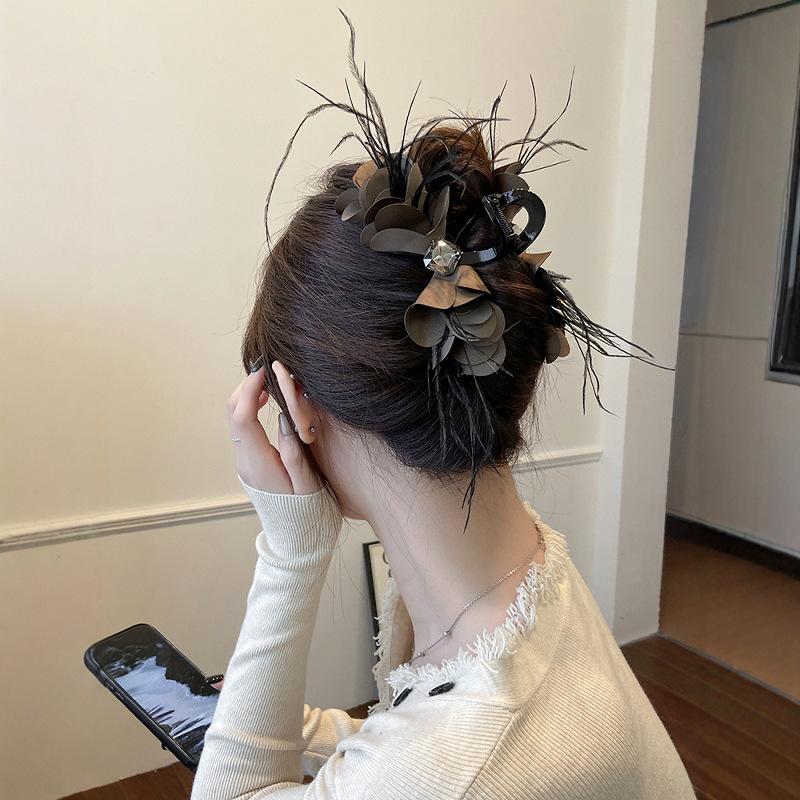羽毛花瓣蝴蝶结抓夹发抓夹子发饰鲨鱼夹大号发量多头饰小半扎发卡