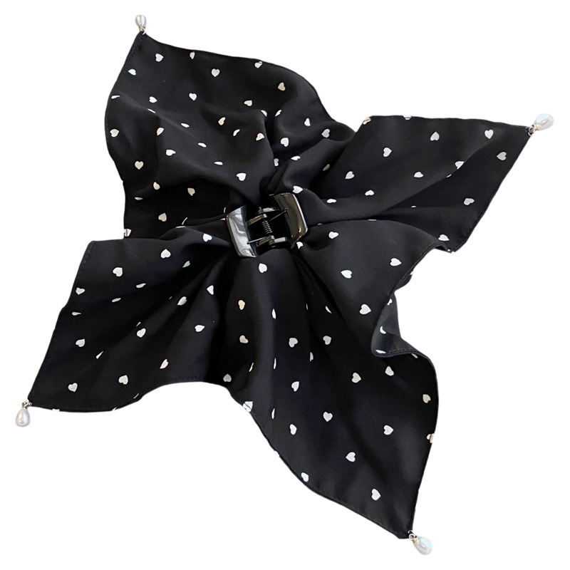 原创早秋新款高级感温柔爱心方巾蝴蝶结半扎发马尾夹后脑勺鲨鱼夹