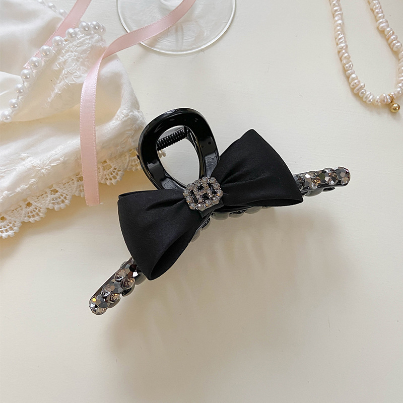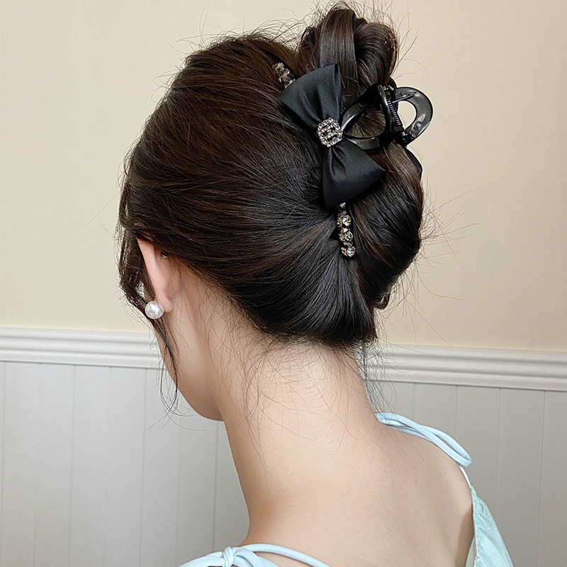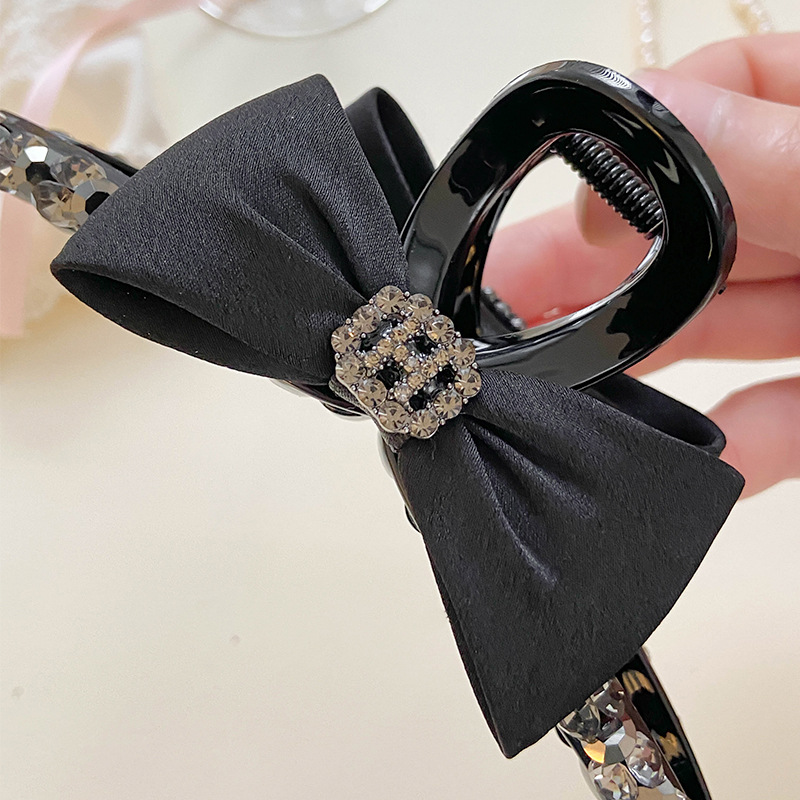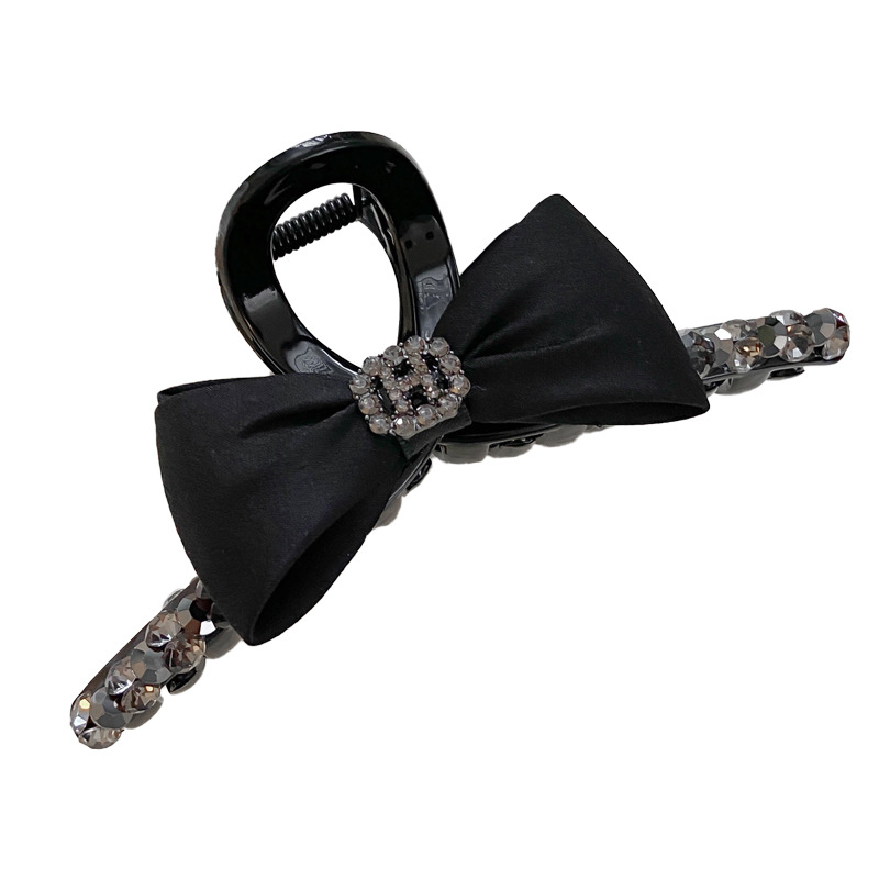 H字母婕克钻黑色蝴蝶结抓夹网红高级感后脑勺鲨鱼夹子顶夹头饰品