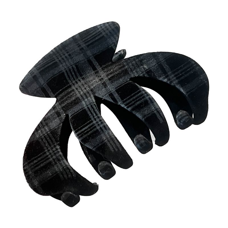 网红新款简约黑蓝格子植绒抓夹女后脑勺盘发夹子气质鲨鱼夹子