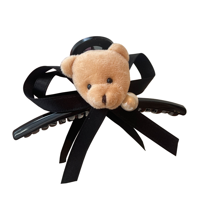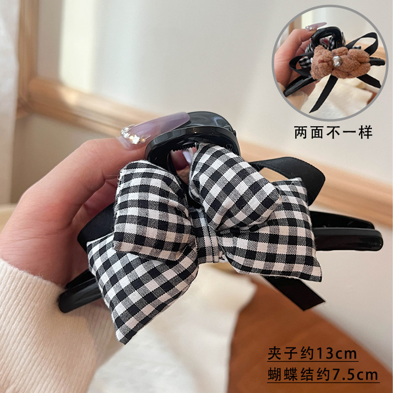 原创早秋新款AB面蝴蝶结小熊毛绒发抓夹发量多后脑勺大号鲨鱼夹子