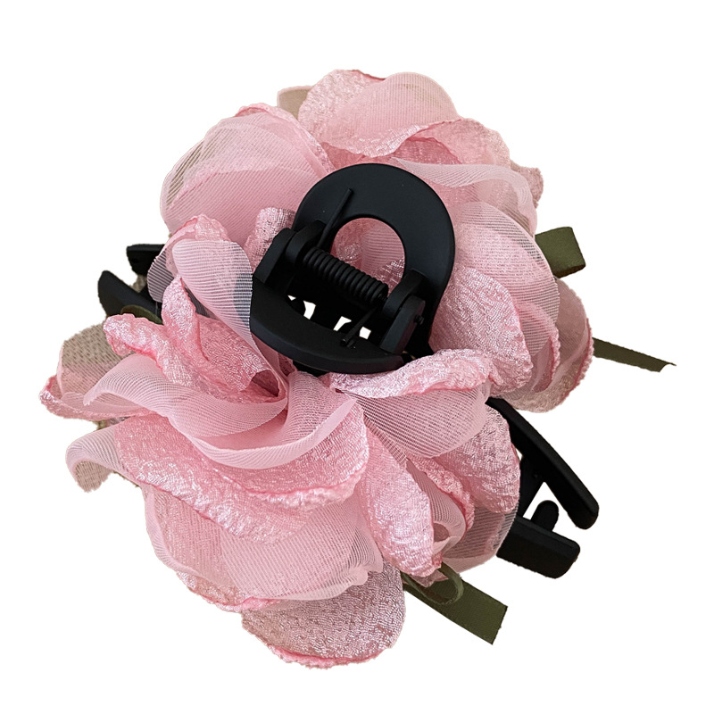 年新款法式花朵抓夹头饰干枯玫瑰花发夹头花发饰大号鲨鱼夹女