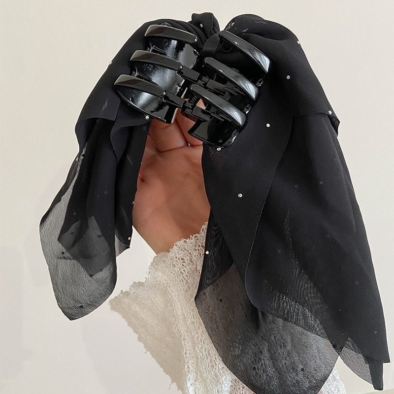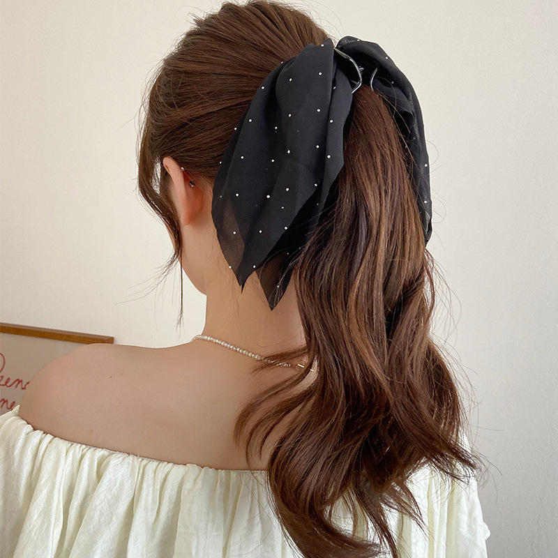 新款法式温柔气质蝴蝶结飘带马尾抓夹时尚减龄鲨鱼夹子发抓子发饰