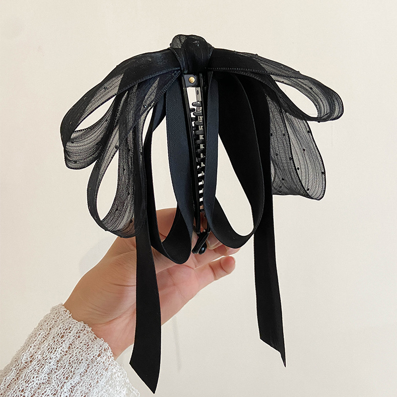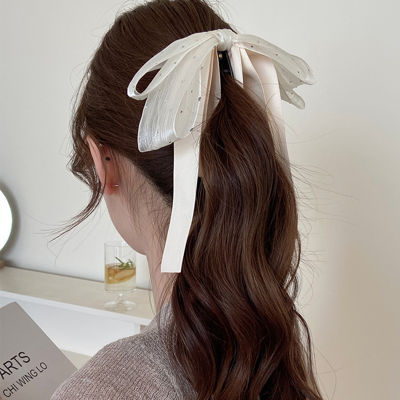 高级感抓夹网纱水钻飘带蝴蝶结香蕉夹竖夹法式简约马尾夹子发饰品