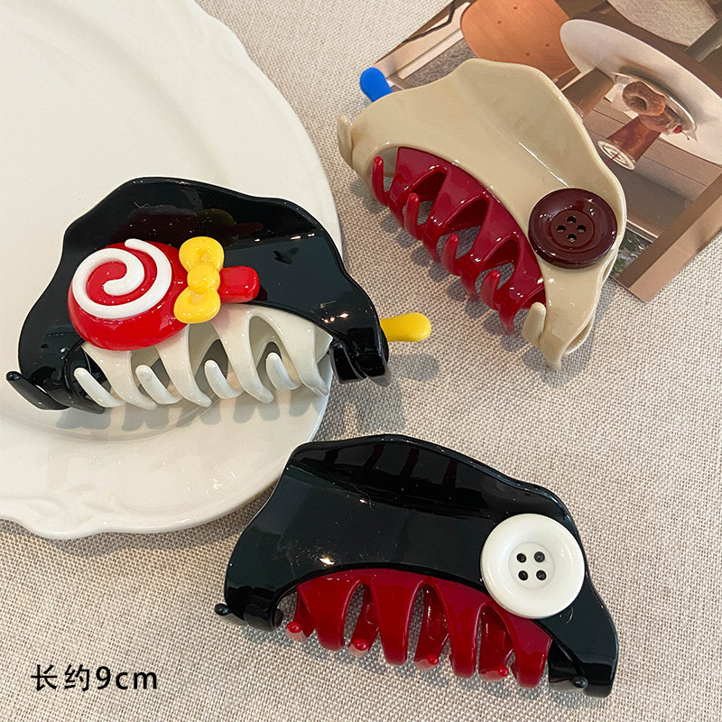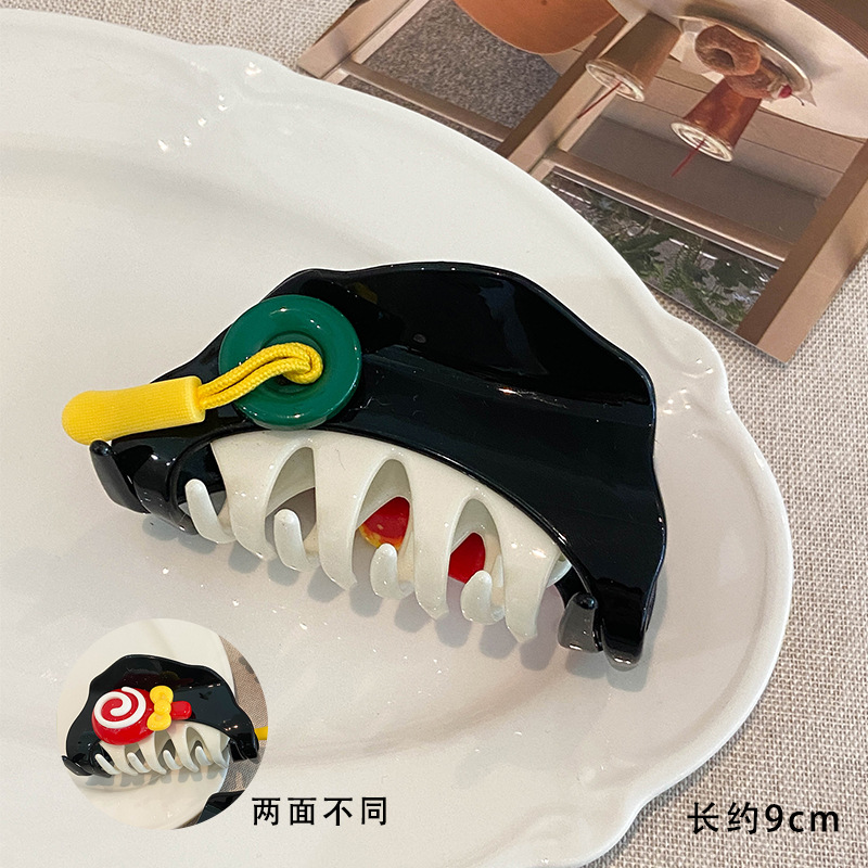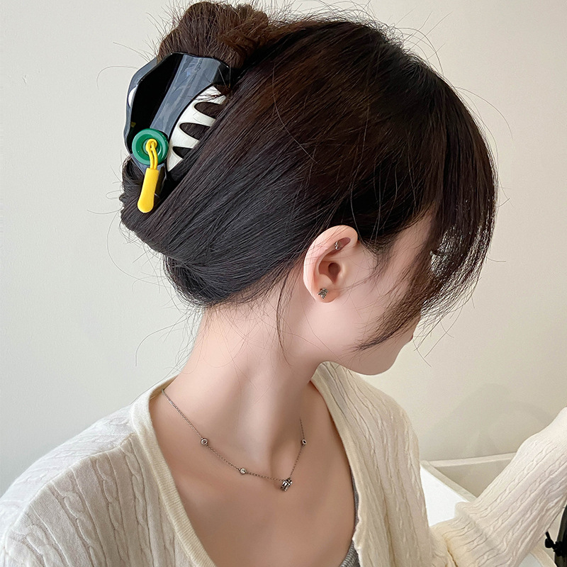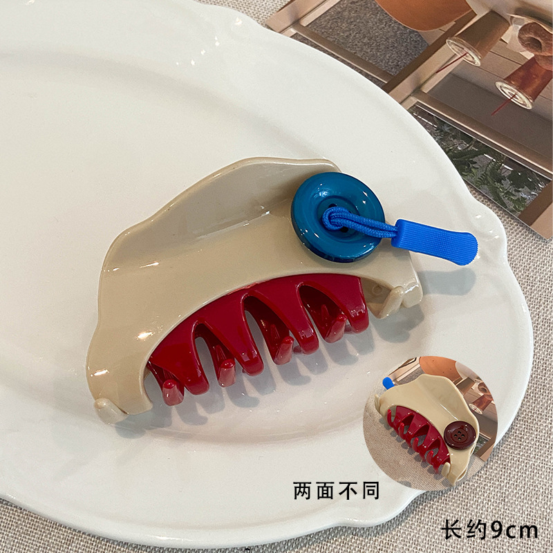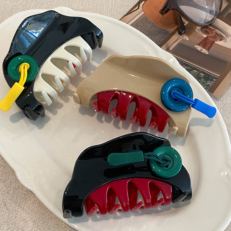 原创意新潮趣味可爱撞色纽扣拉链条抓夹气质发抓发夹后脑勺鲨鱼夹