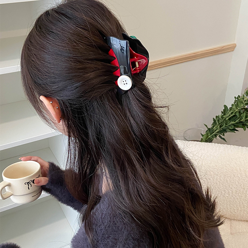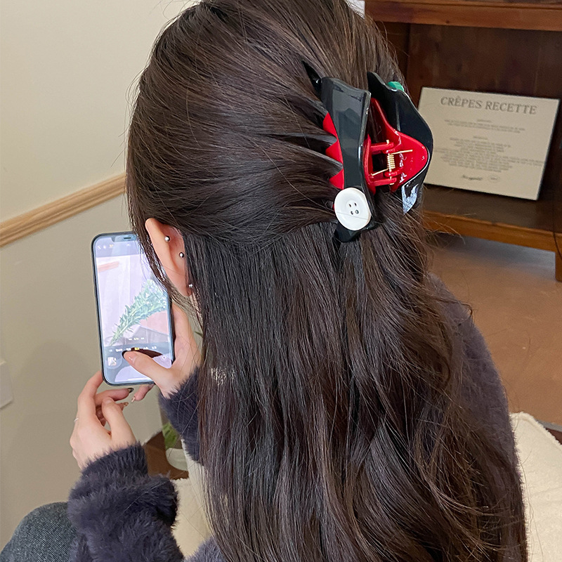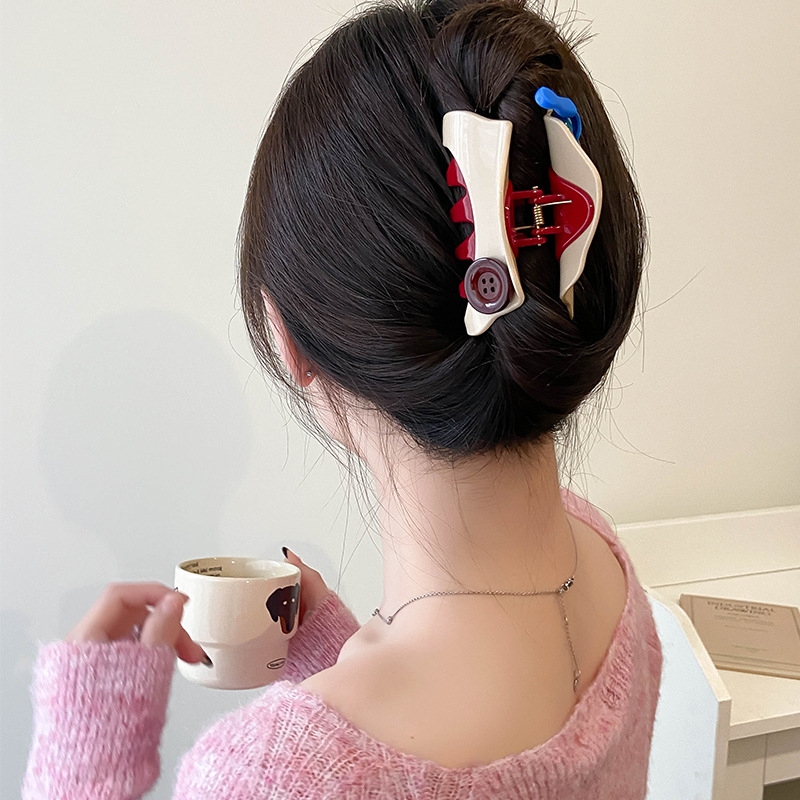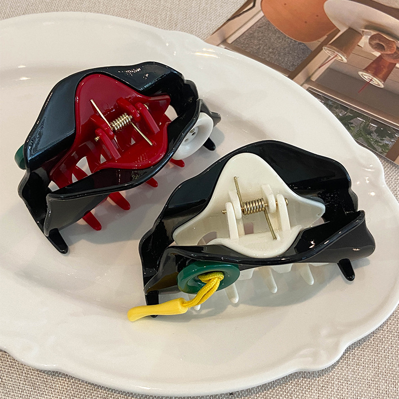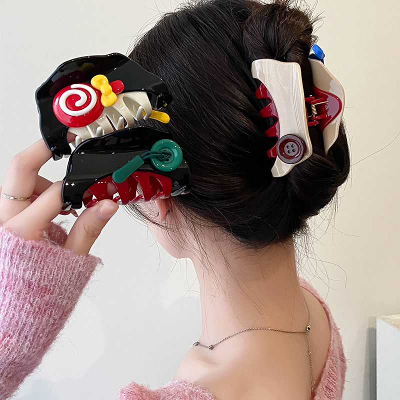原创意新潮趣味可爱撞色纽扣拉链条抓夹气质发抓发夹后脑勺鲨鱼夹