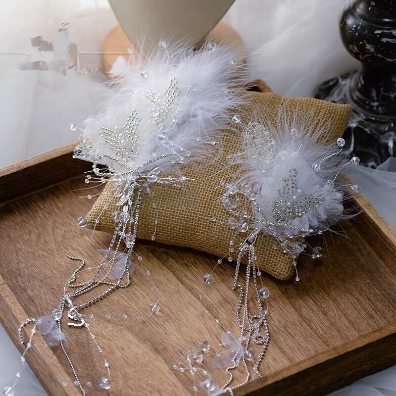 仙气灵动飘逸羽毛花瓣流苏串珠发夹新娘头饰晨袍汉服造型写真配饰