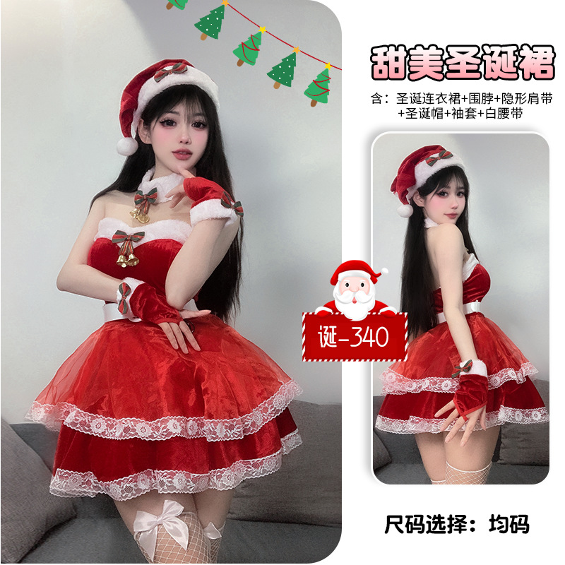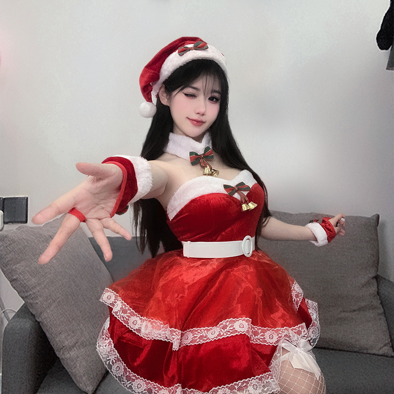 圣诞节情趣内衣性感抹胸修身开叉吊带睡裙丝绒新年装女制服