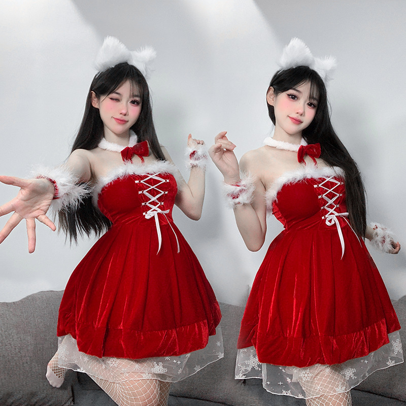 纯欲性感圣诞节服装战袍秋冬收腰显瘦丝绒连衣裙氛围感
