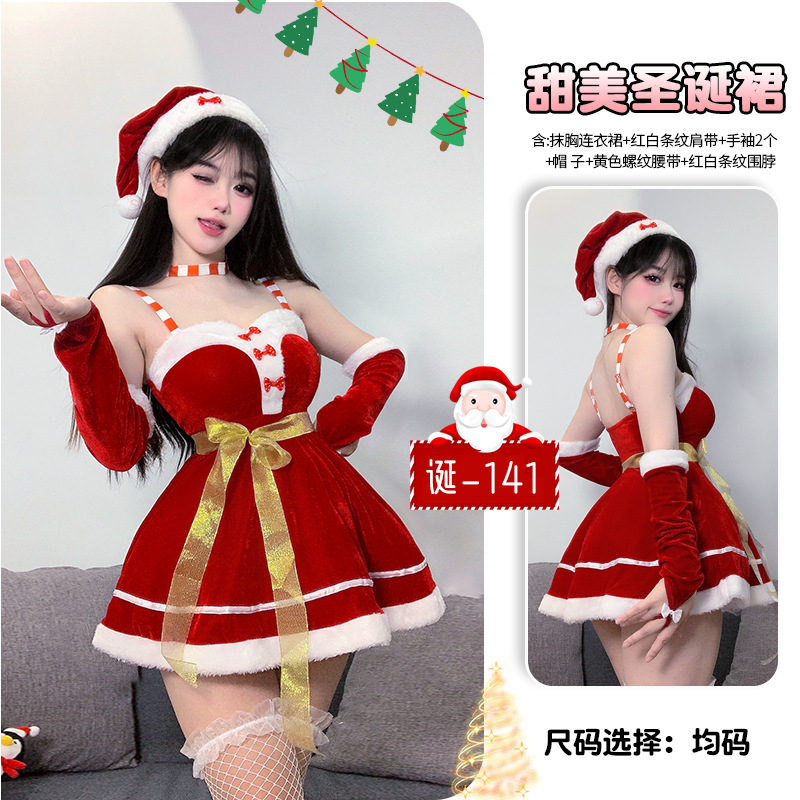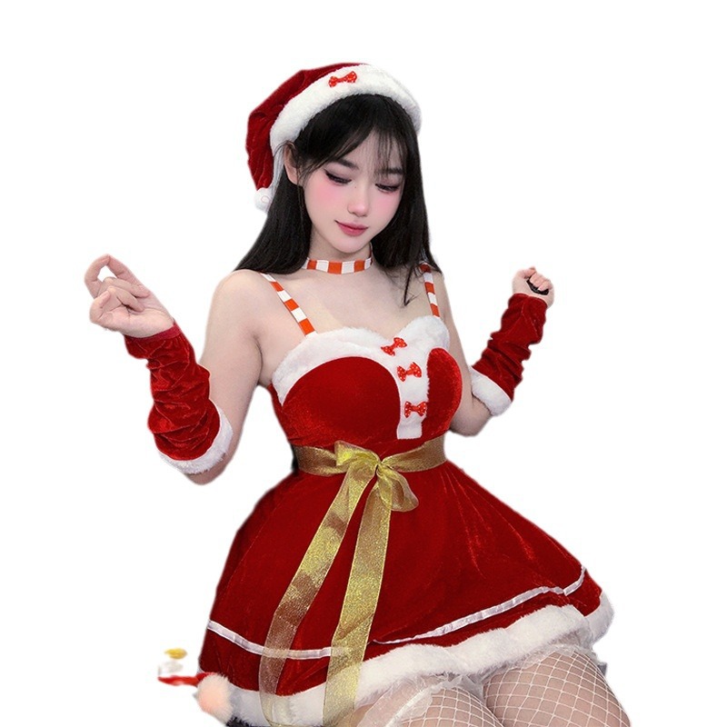 丝绒圣诞主题服饰女装氛围感穿搭连衣裙角色扮演衣服演出服红