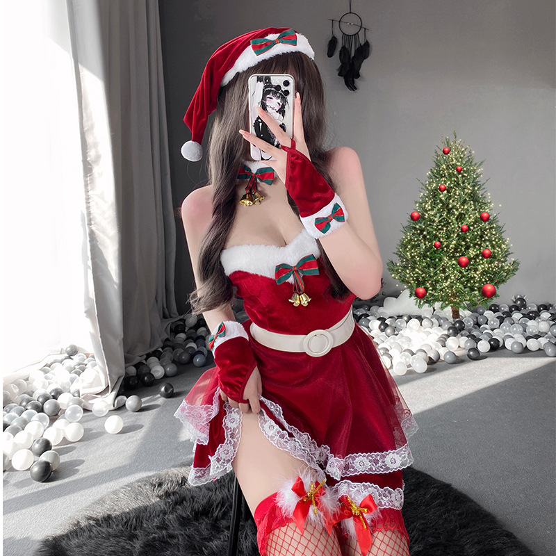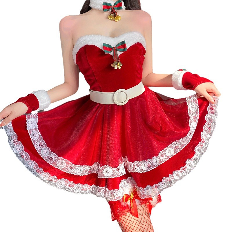 派对主播演出服金丝绒圣诞服性感兔女郎服装圣诞装夜店酒吧