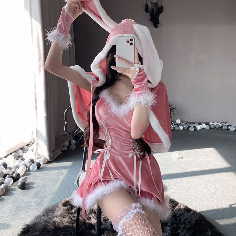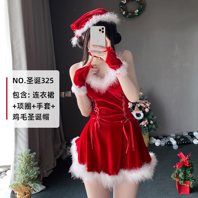 秋冬主题服装裙子纯欲风圣诞裙红色设计感套装蝴蝶结吊带女
