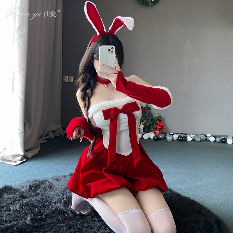 情趣内衣圣诞装性感兔女郎制服抹胸连衣裙纯欲演出服