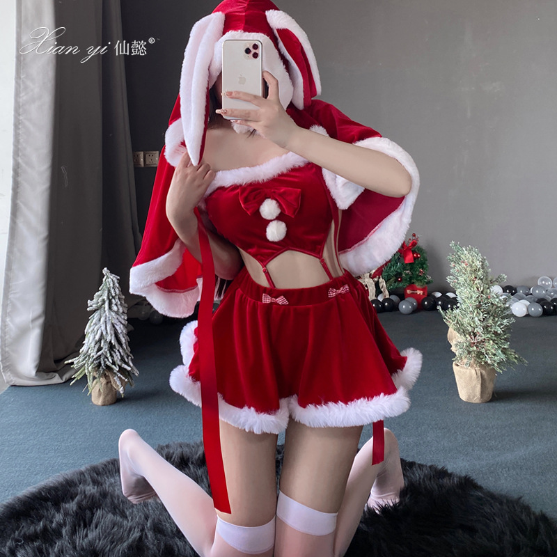 情趣内衣圣诞装红色战袍制服性感兔女郎新年衣服