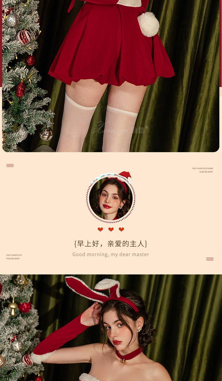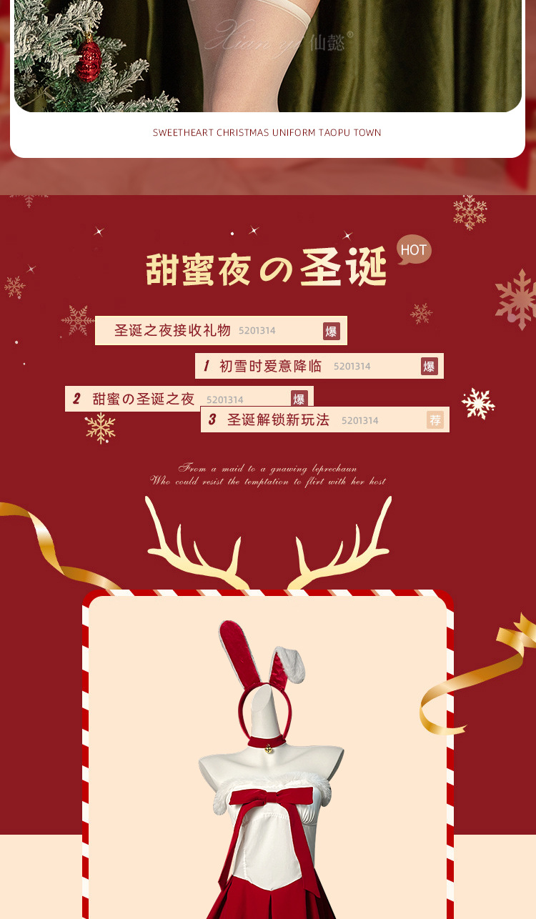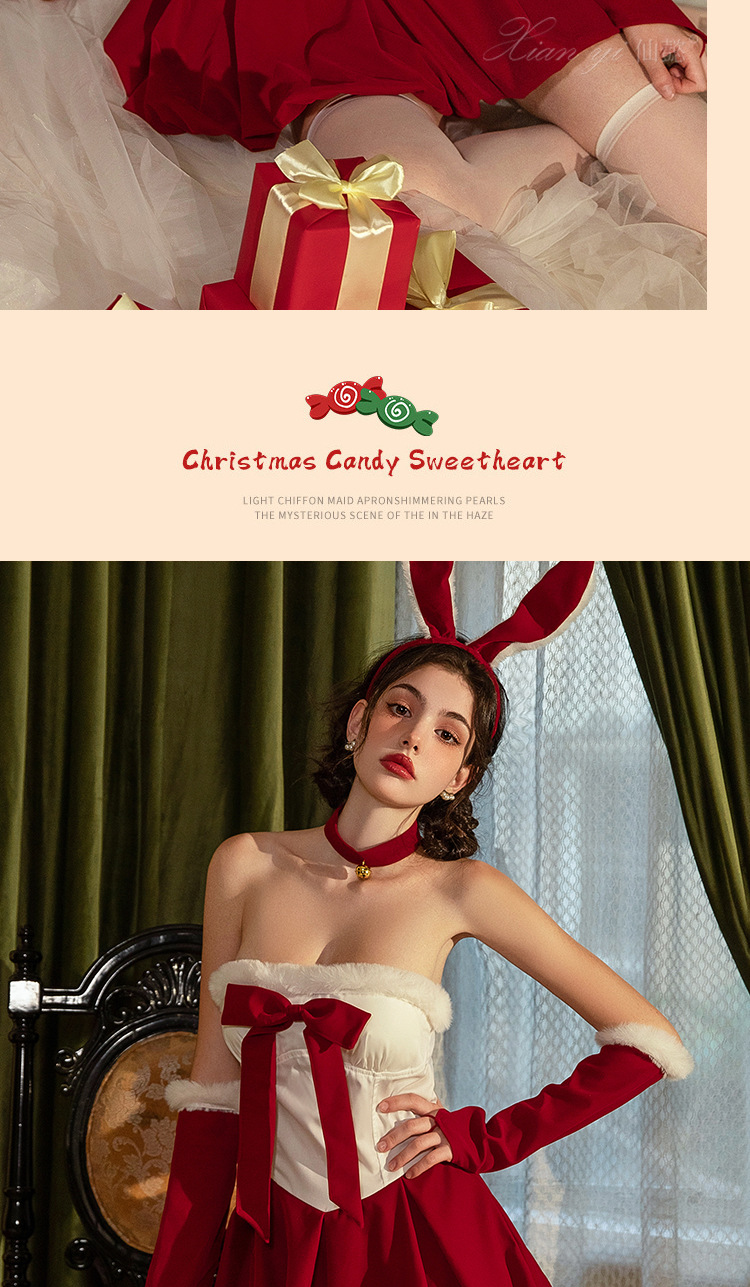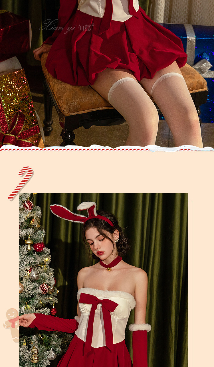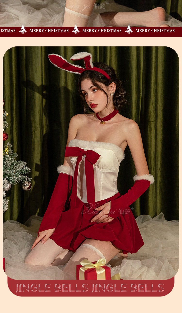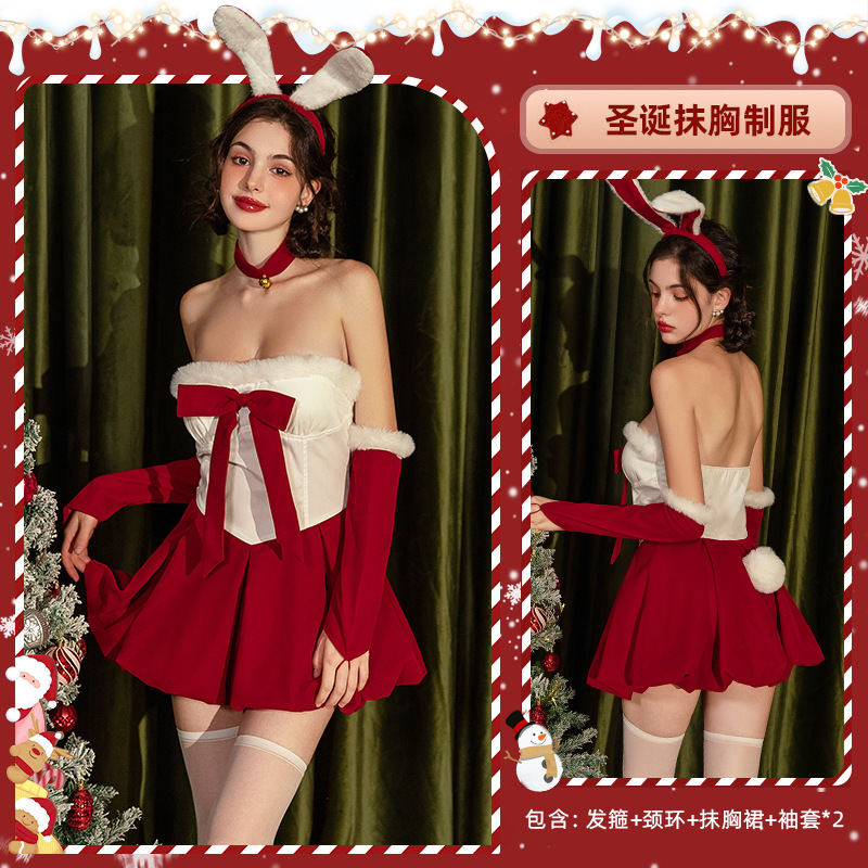 圣诞节衣服丝绒抹胸礼服裙子兔女郎演出服圣诞装派对服装