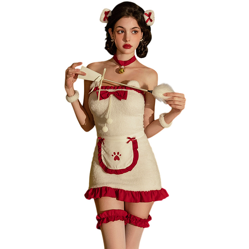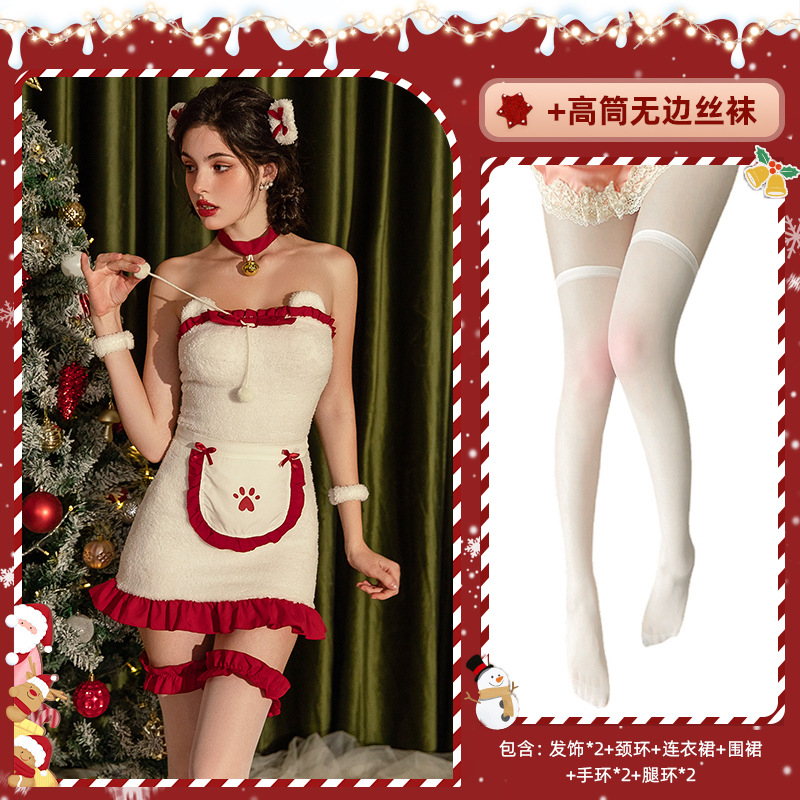 圣诞节服装可爱女仆装cosplay演出服毛绒抹胸包臀裙圣诞装