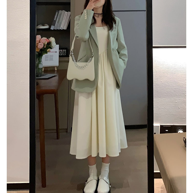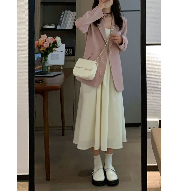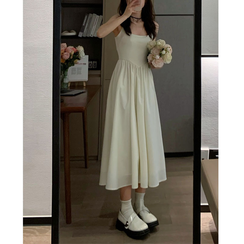 春初恋温柔风气质显瘦度假茶歇白色打底性感吊带连衣裙